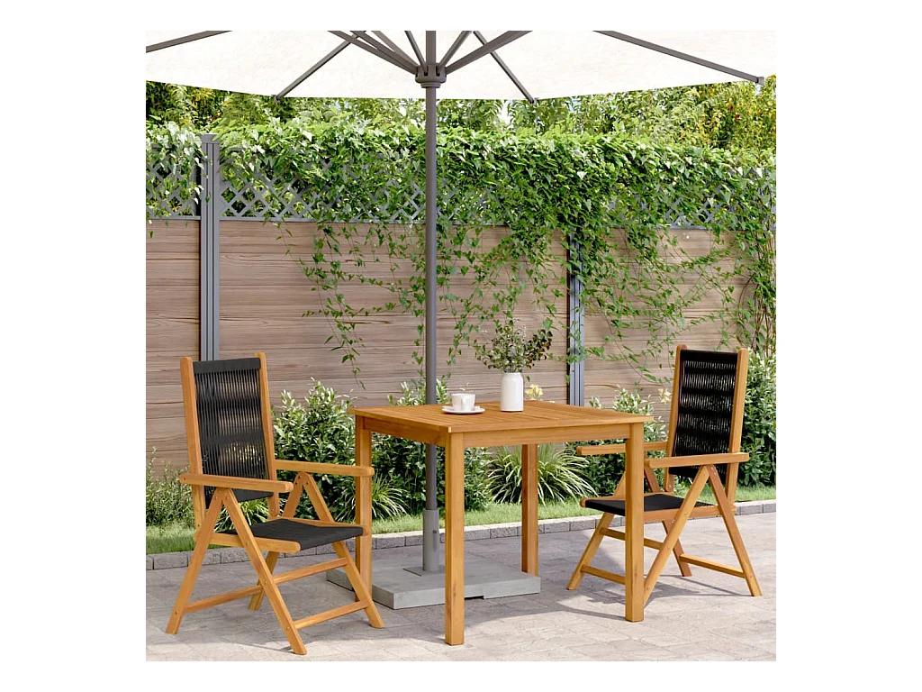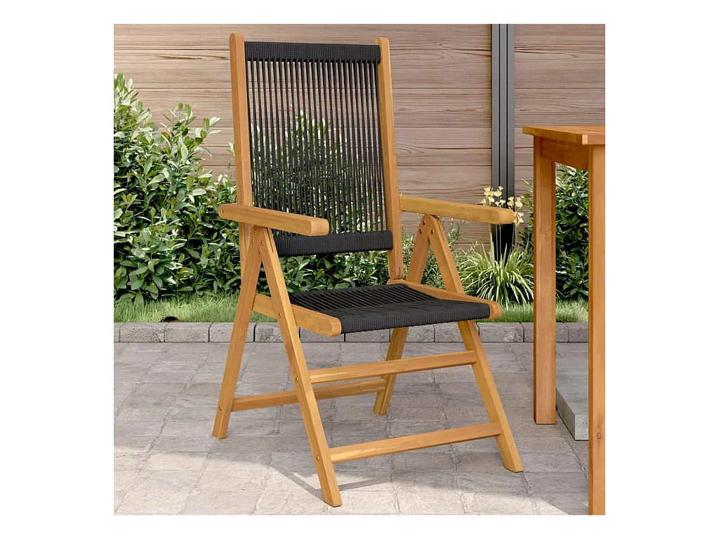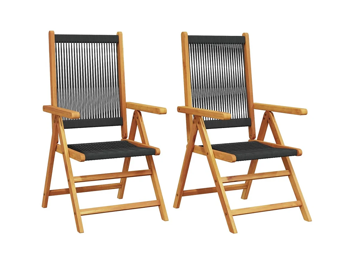 Tuinstoelenset van 2 zwart acaciahout en polypropyleen