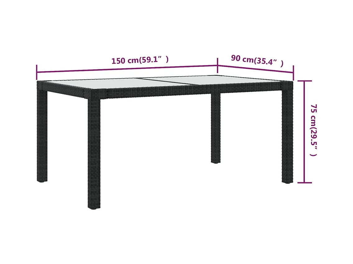 Tuintafel 150x90x75cm Gehard glas en geweven hars Zwart