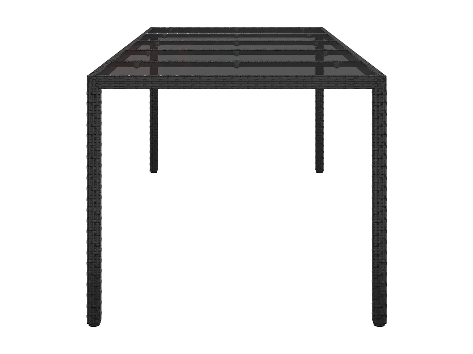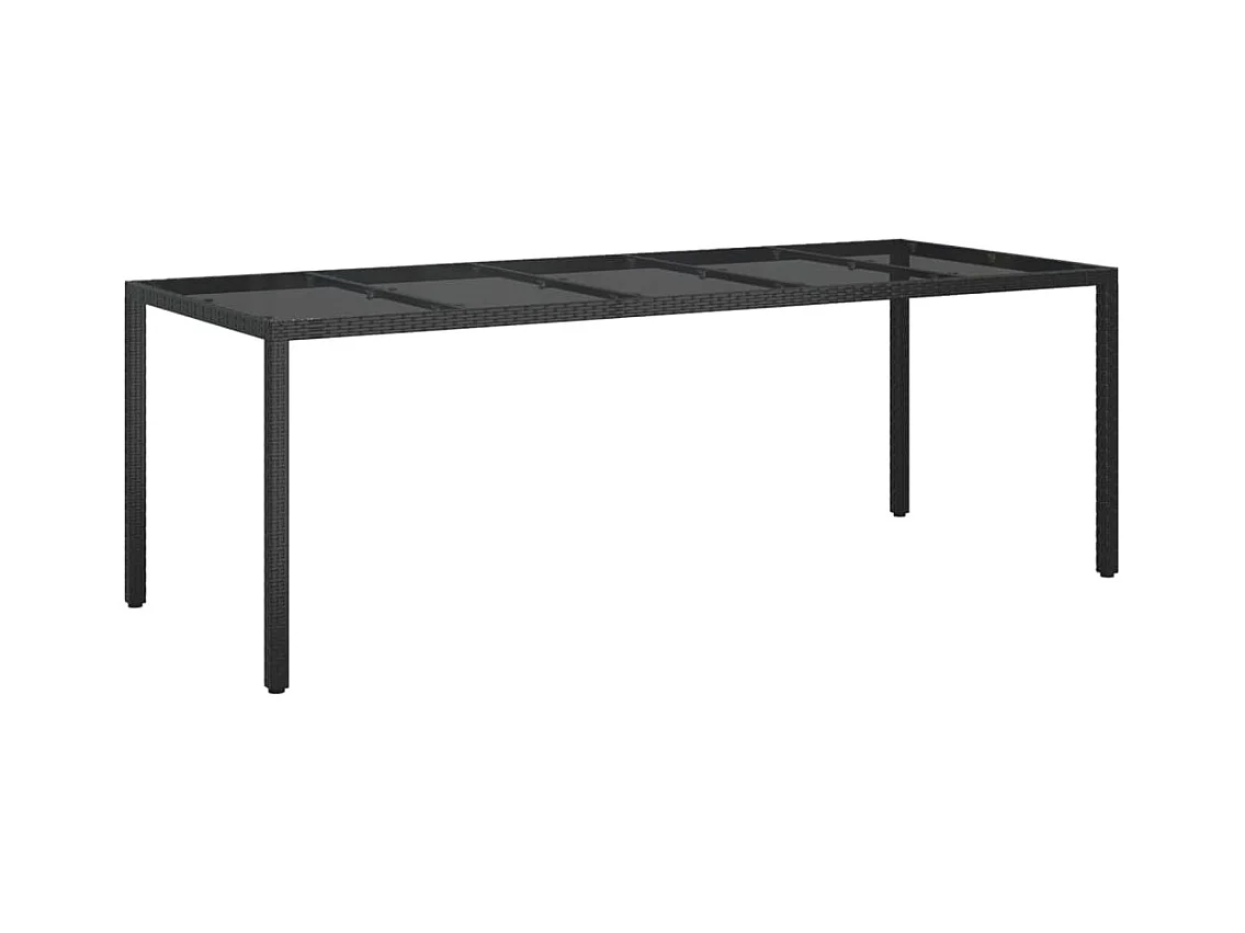Tuintafel 250x100x75 cm gehard glas en poly rattan zwart