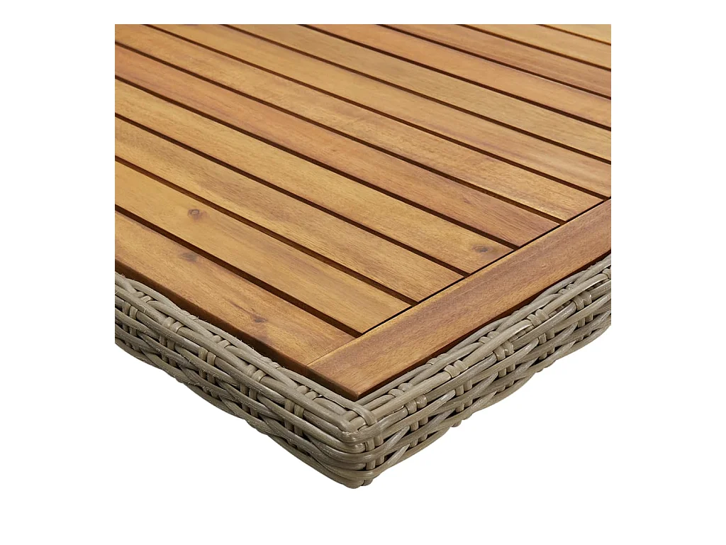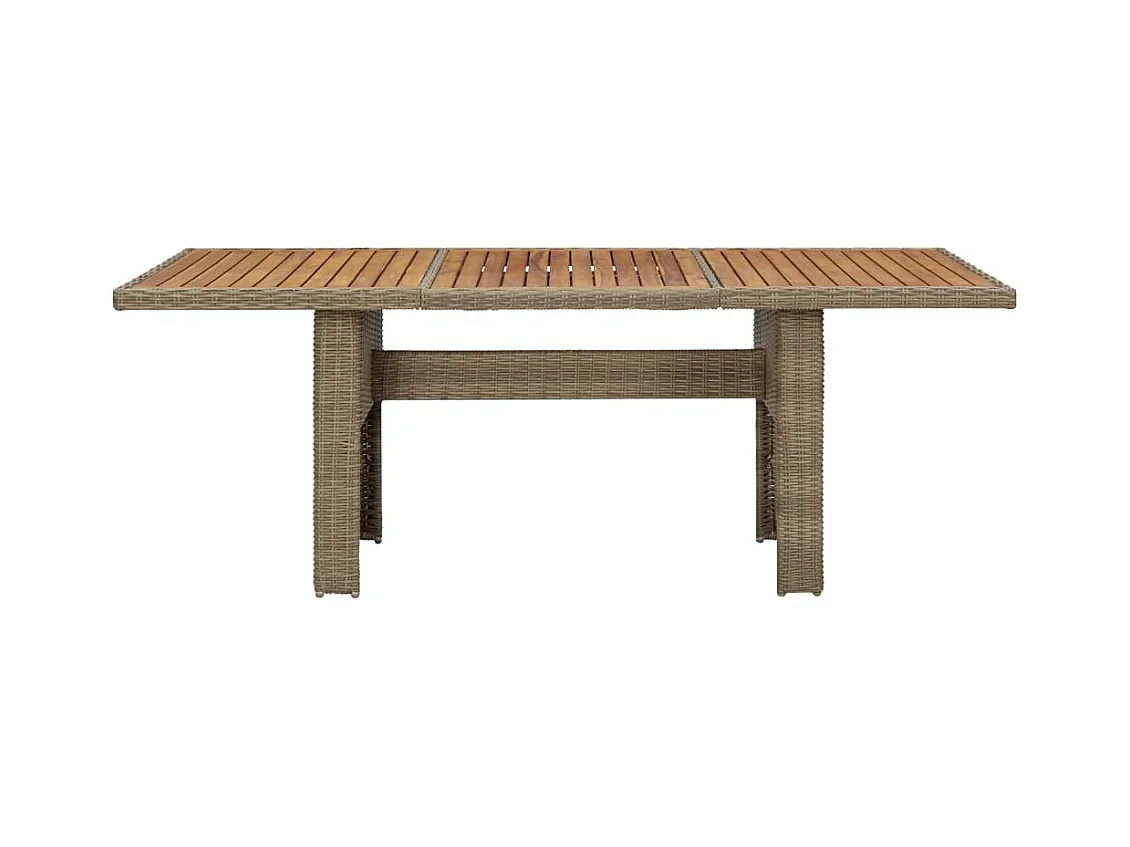 Bruine tuintafel van gevlochten hars en massief acaciahout