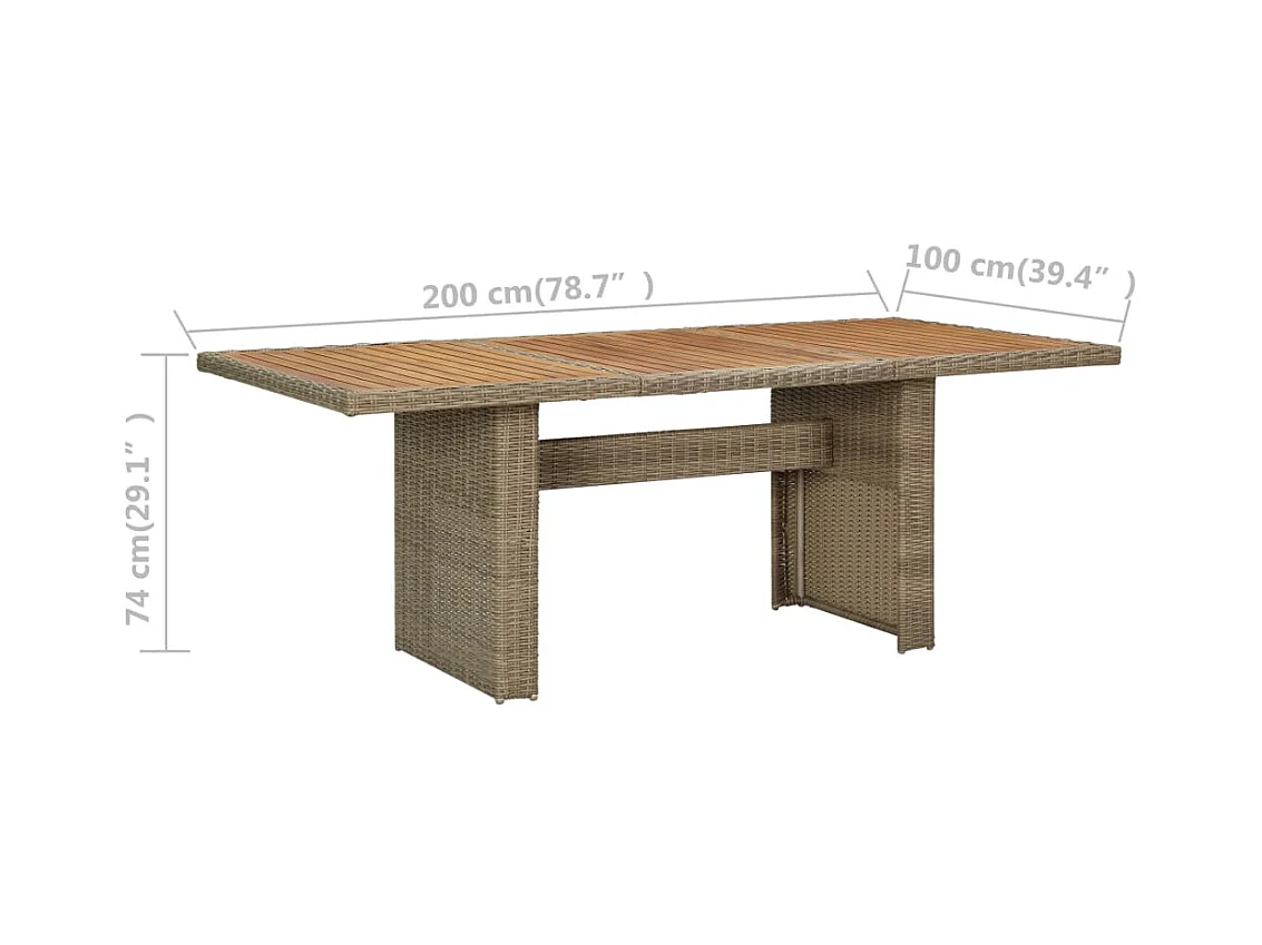 Bruine tuintafel 200 x 100 x 73 cm polyrotan