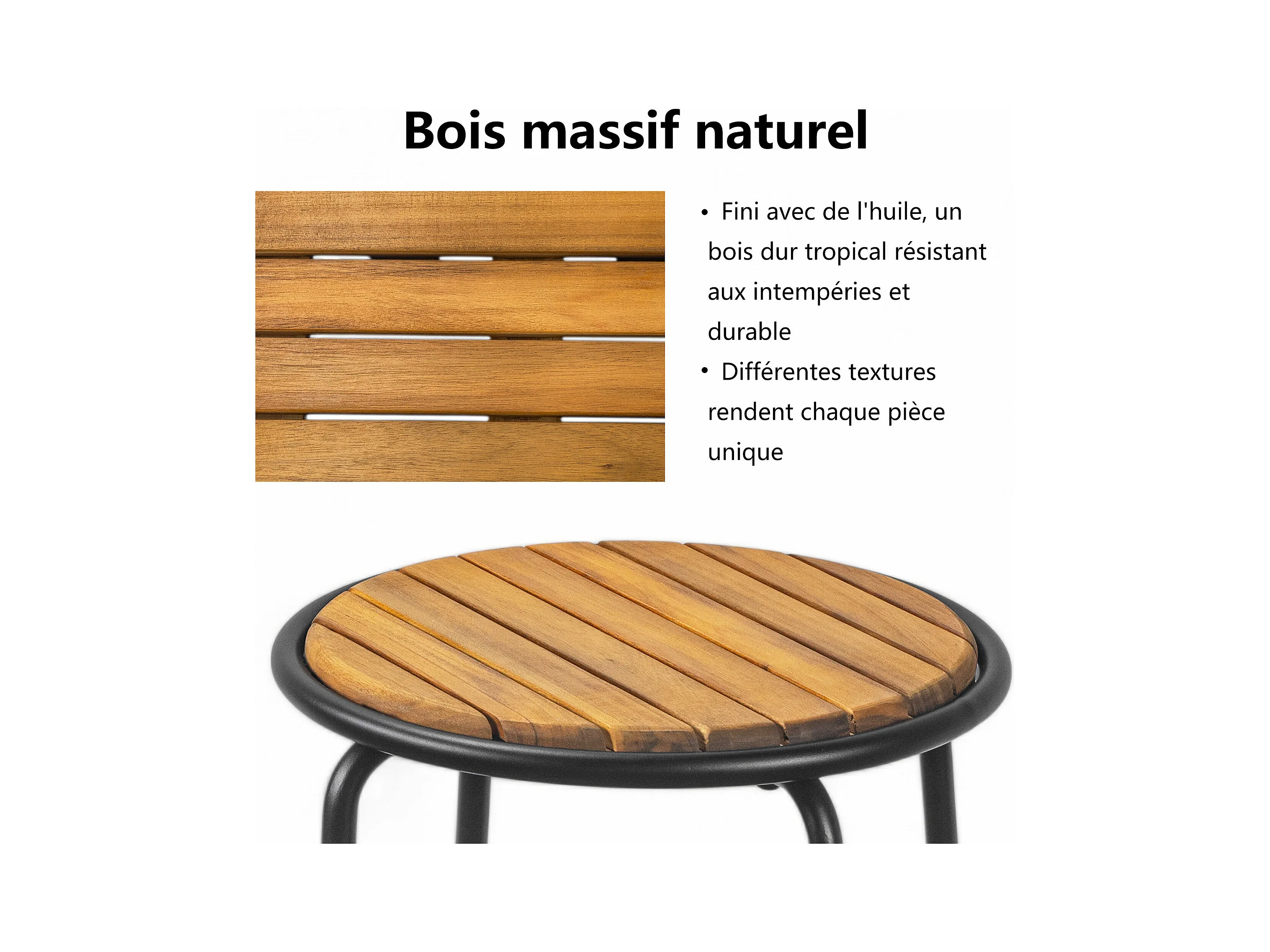 Tuintafel en 2 stoelen set - Gegalvaniseerd staal, touw en massief hout - voor terras, tuin en balkon - Zwart