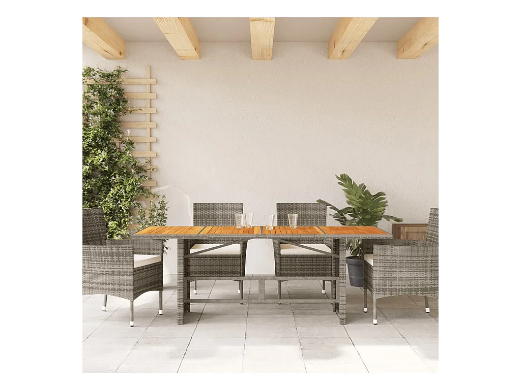 Grijze tuintafel 140x80x75 cm gevlochten hars en acaciahout