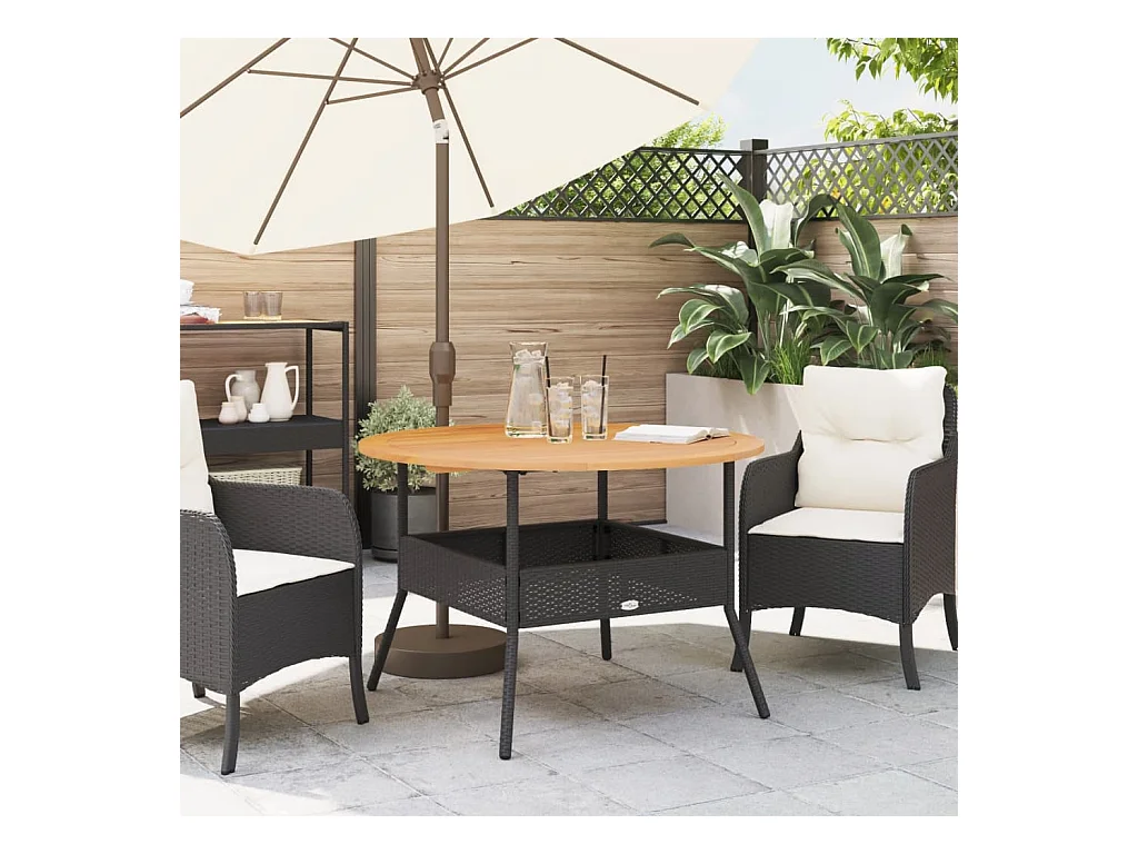 Tuintafel Ø60x75 cm Acacia en gevlochten hars Zwart