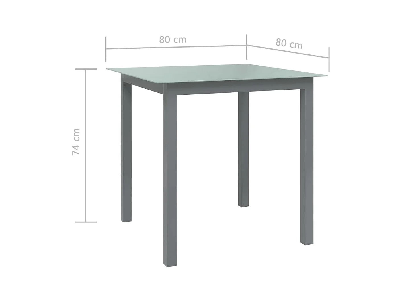 Tuintafel lichtgrijs 80x80x74 cm aluminium en glas