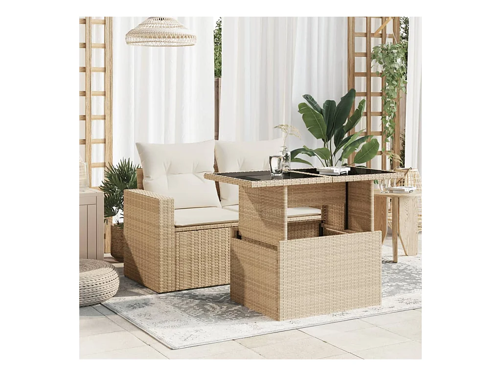 Beige tuintafel 109x107x74 cm Massief hout gevlochten hars