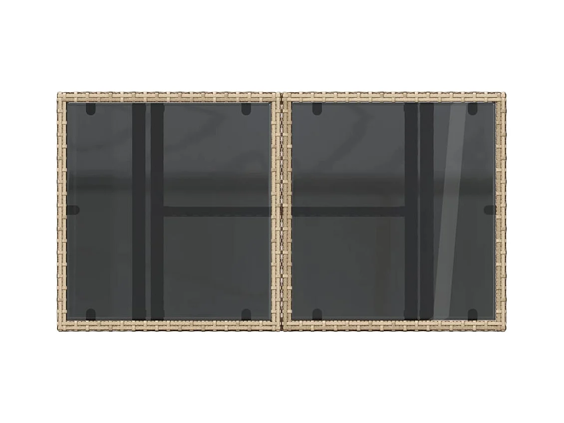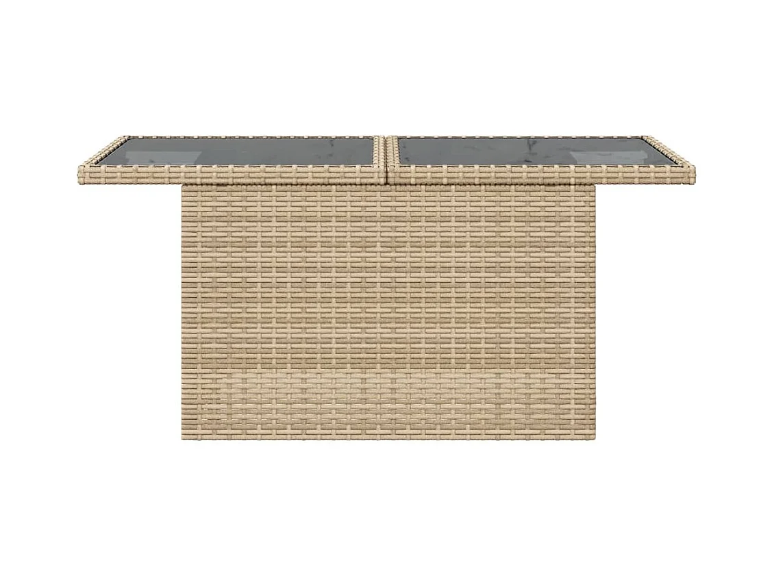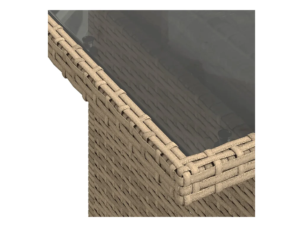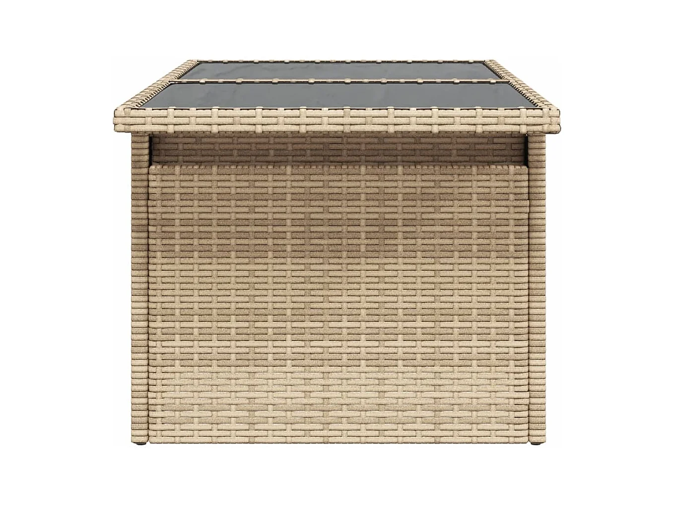 Tuintafel met beige glazen blad 100x55x73 cm polyrotan
