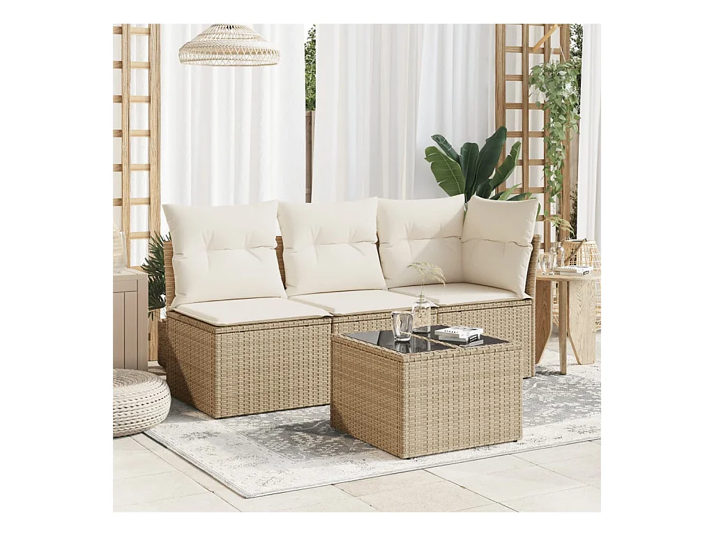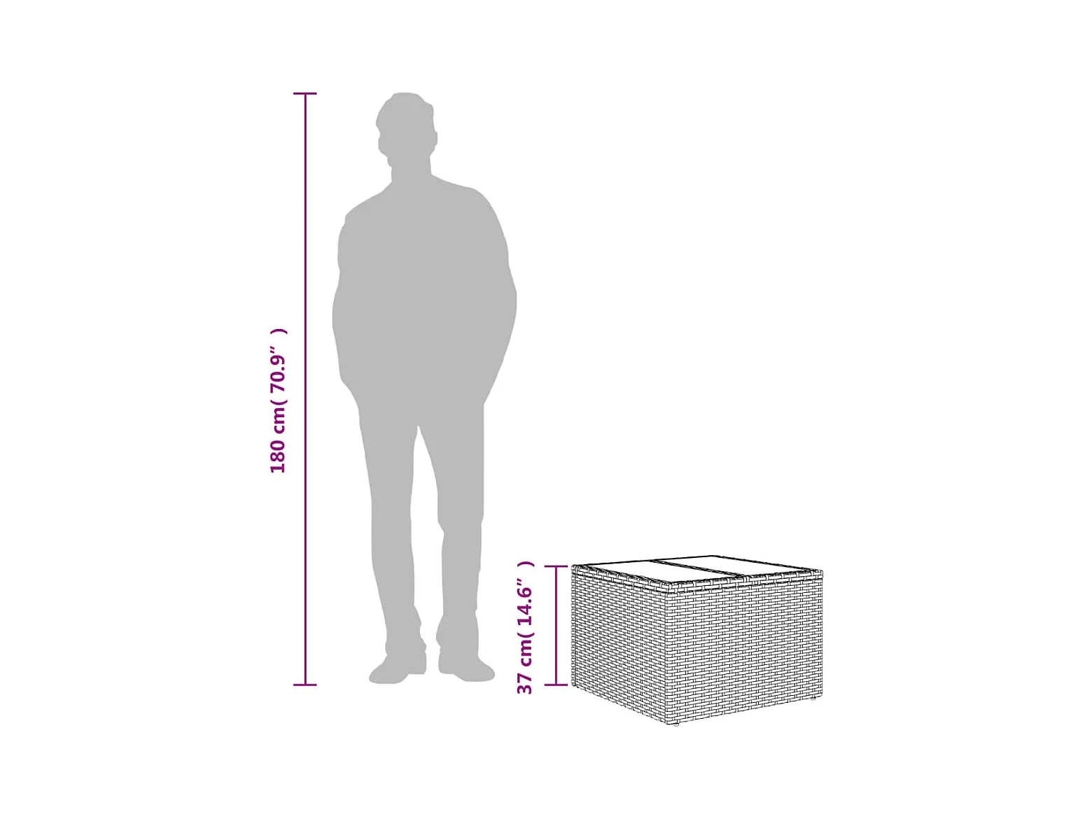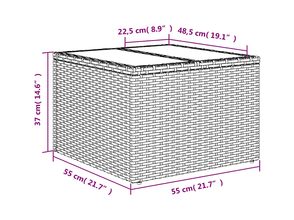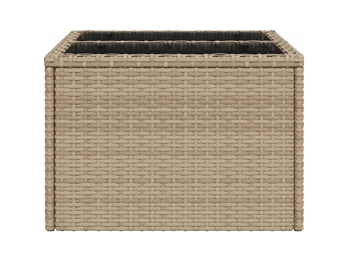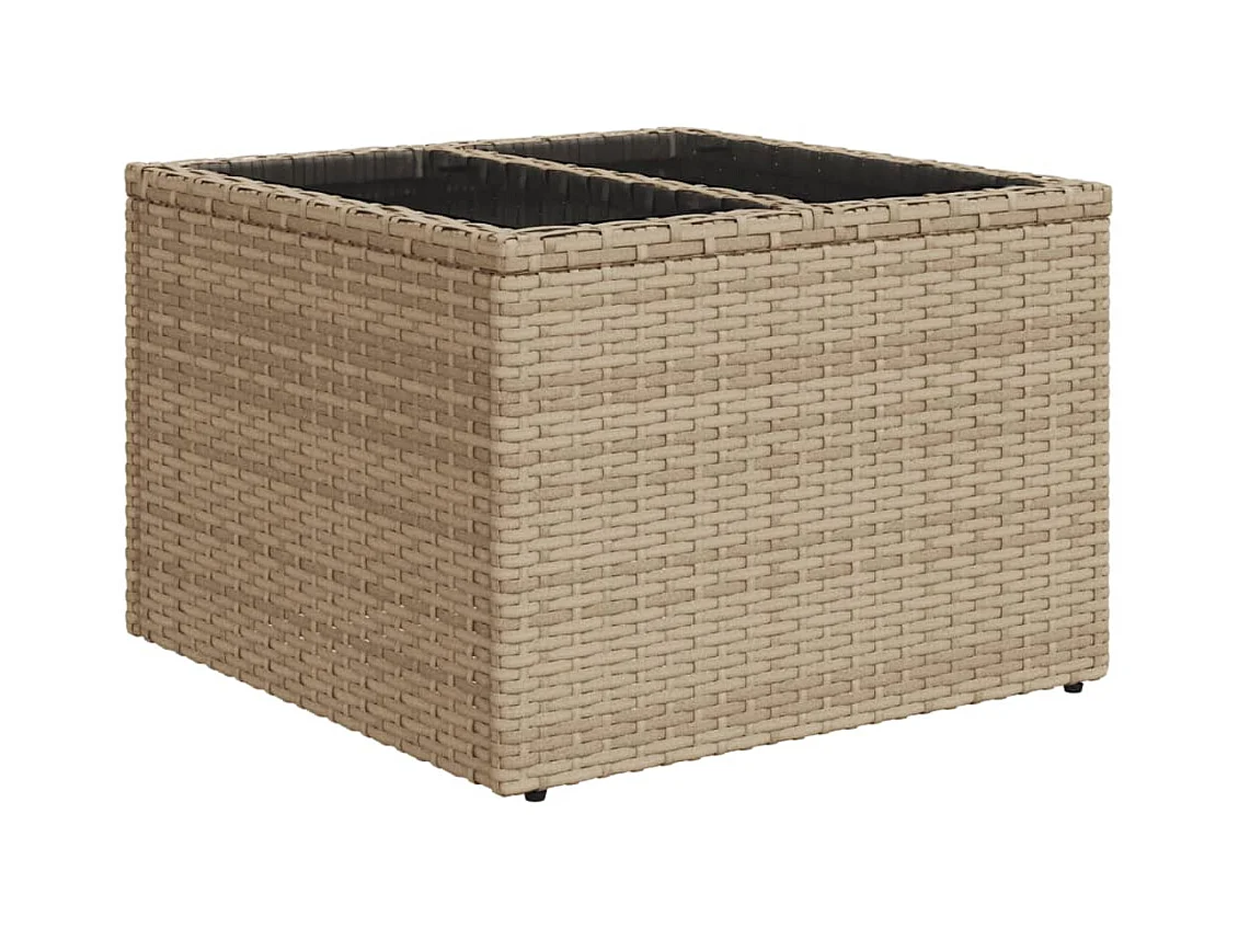 Tuintafel met beige glazen blad 55x55x37cm geweven hars