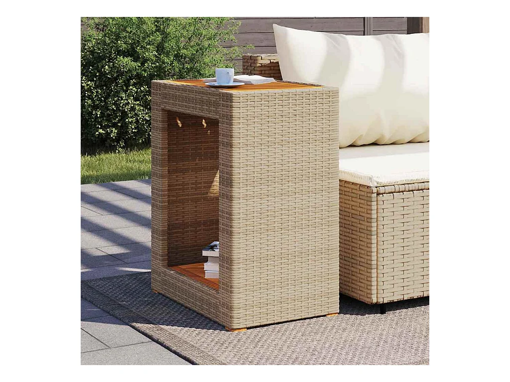 Beige tuintafel 180x90x75 cm gevlochten hars en acacia