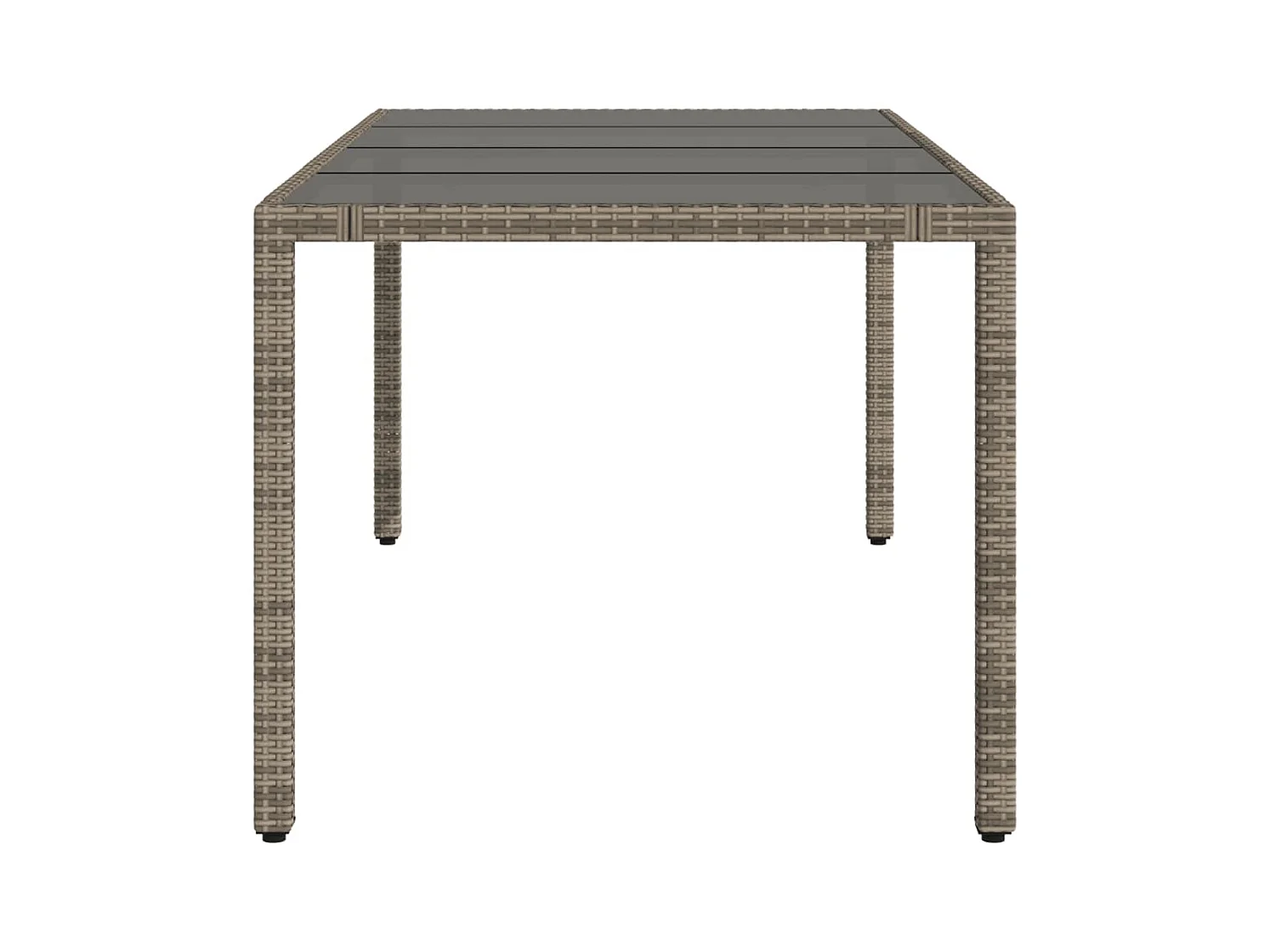 Grijze tuintafel 190x90x75 cm Gehard glas/gevlochten hars