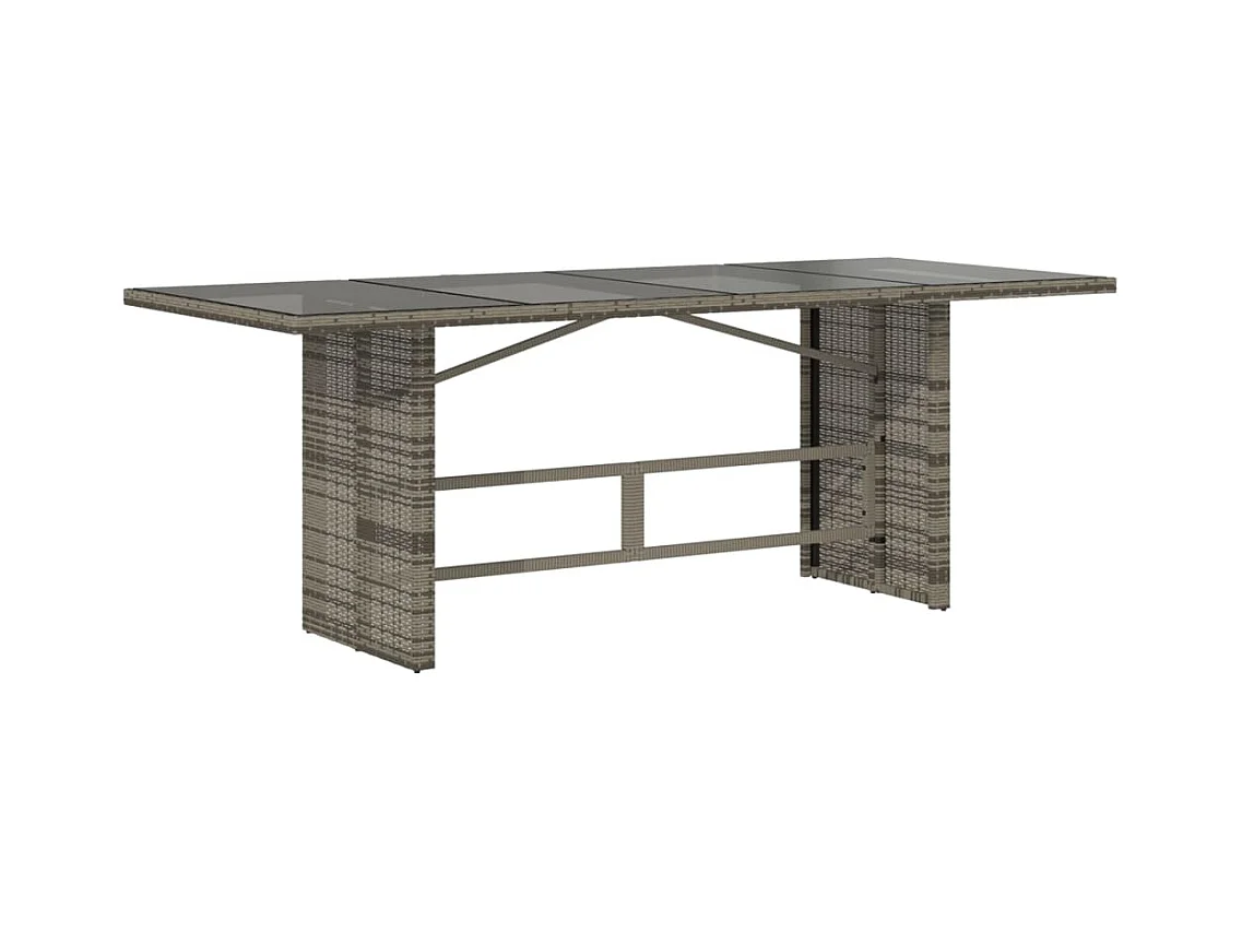 Tuintafel met grijs glazen blad 190x80x74cm geweven hars