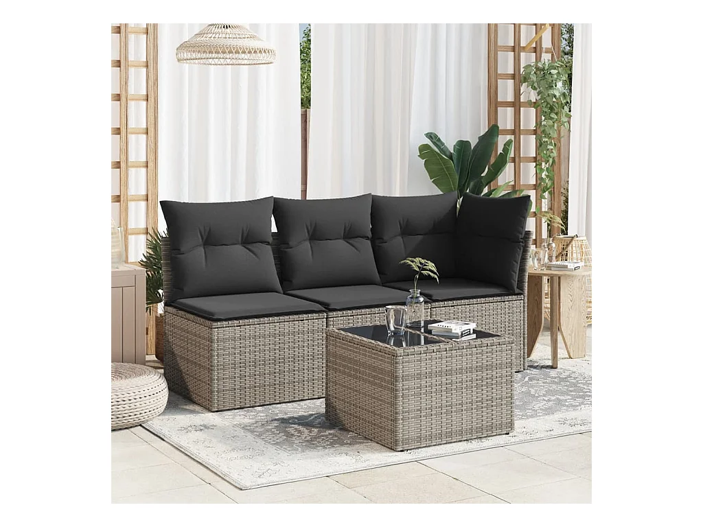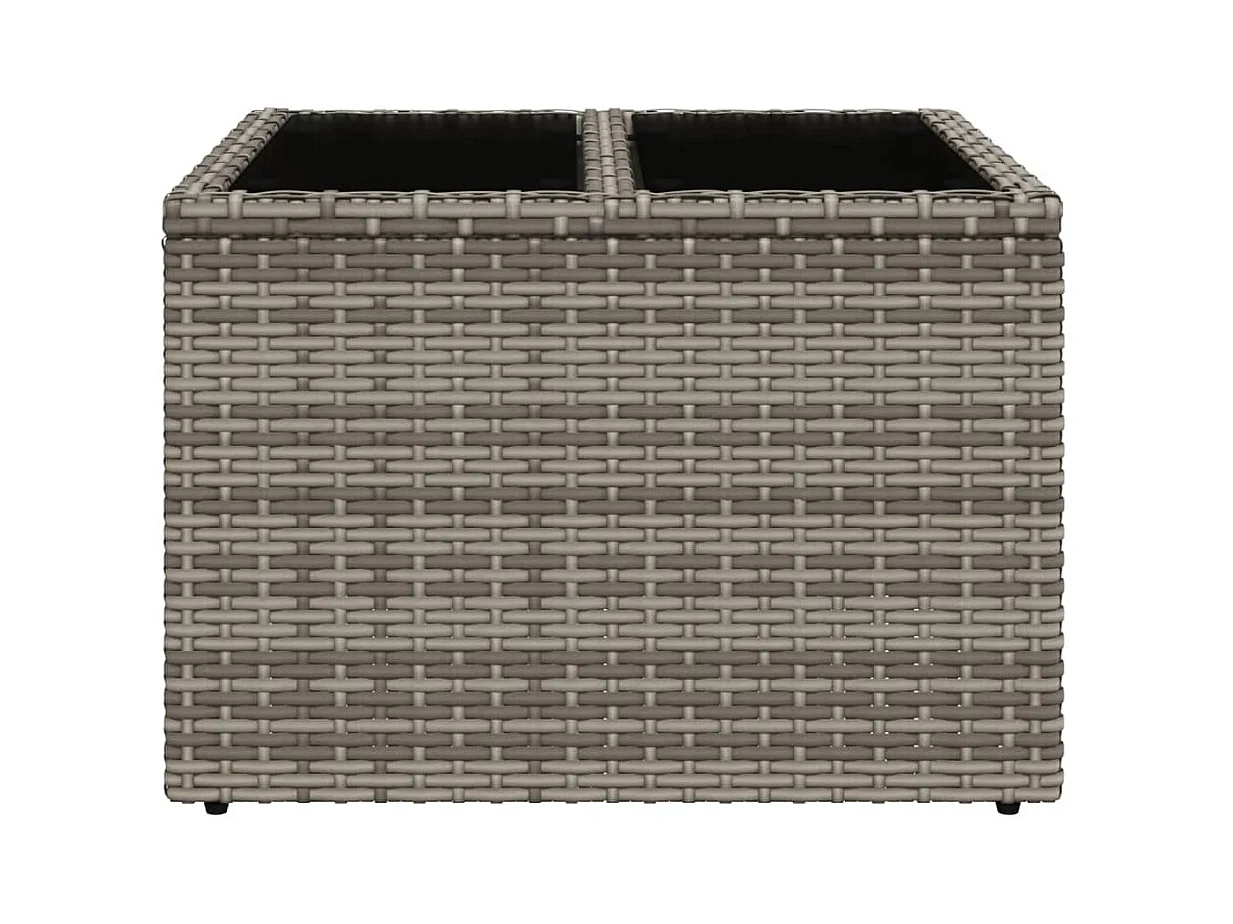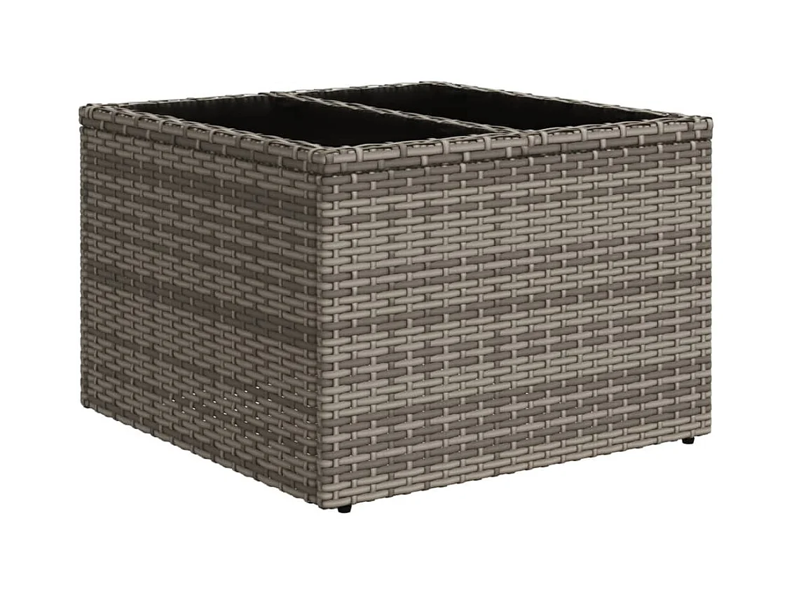 Tuintafel met grijs glazen blad 55x55x37 cm geweven hars