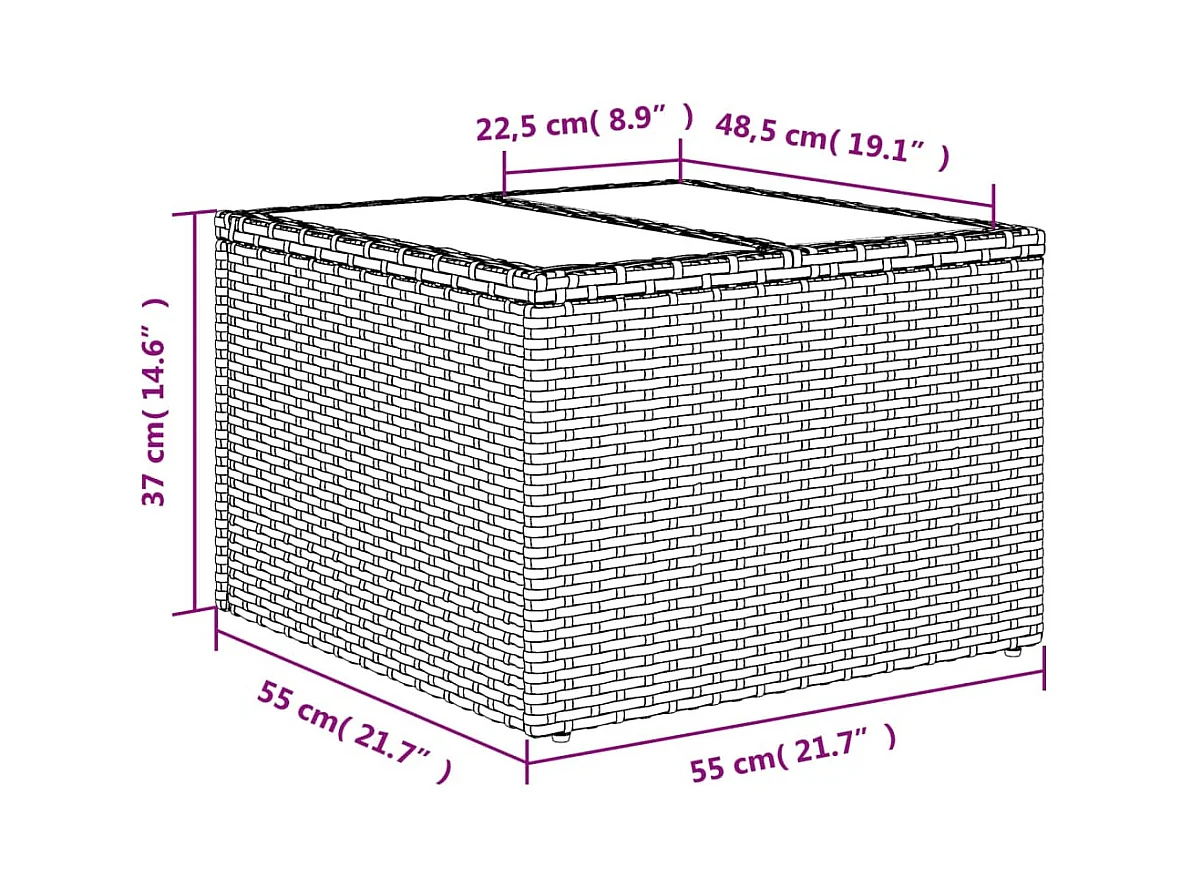 Rechthoekige tuinsalontafel grijs 40x40x37 cm rotan