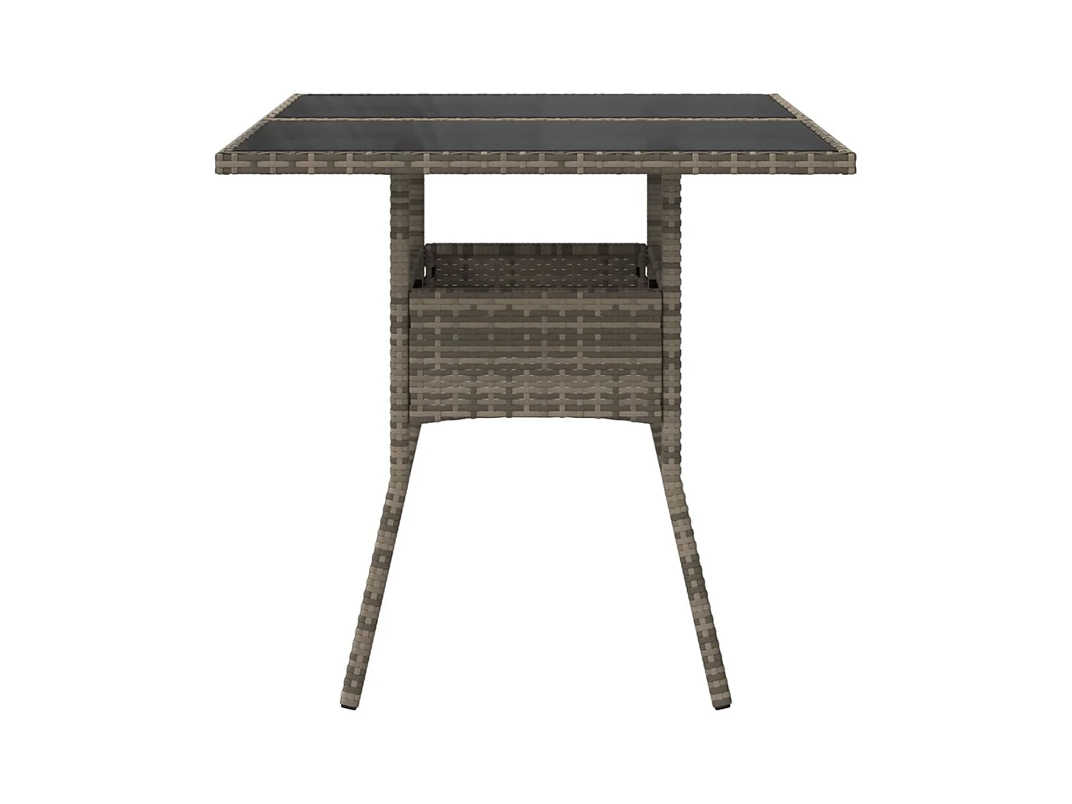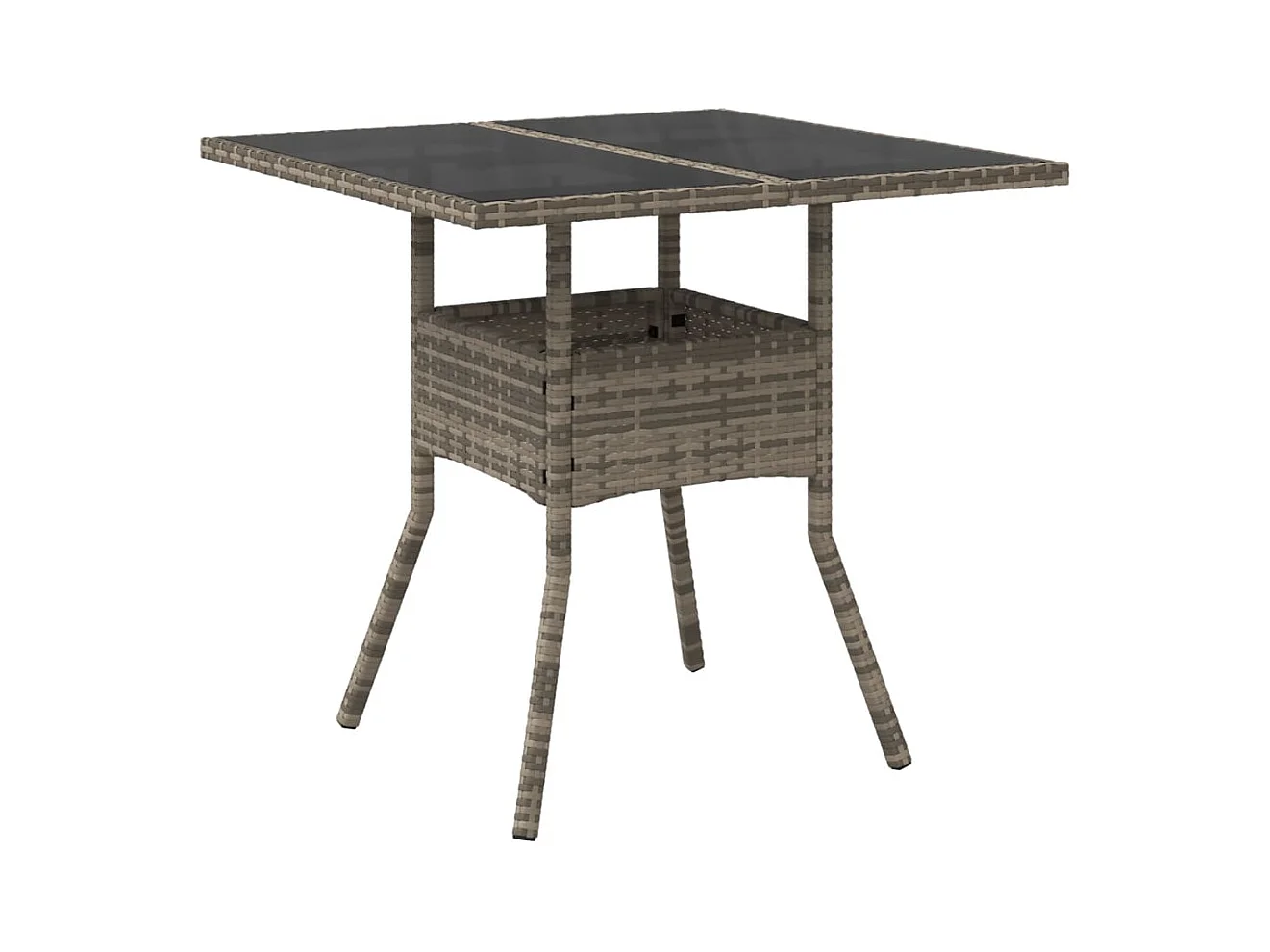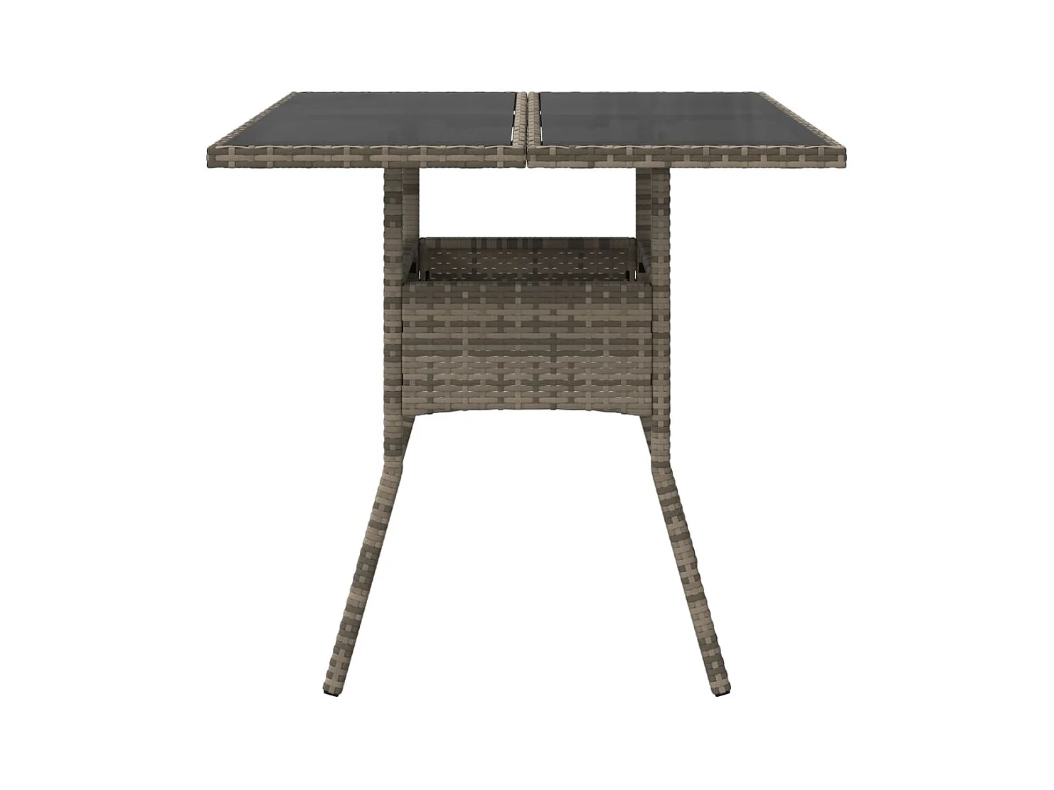Tuintafel met grijs glazen blad 80x80x75 cm geweven hars