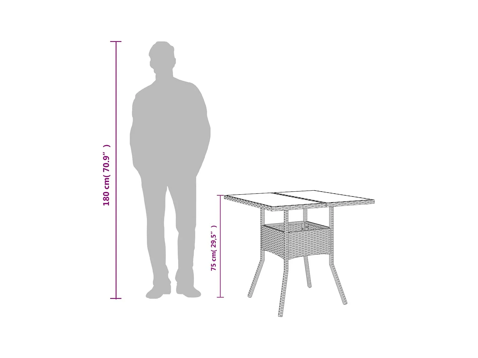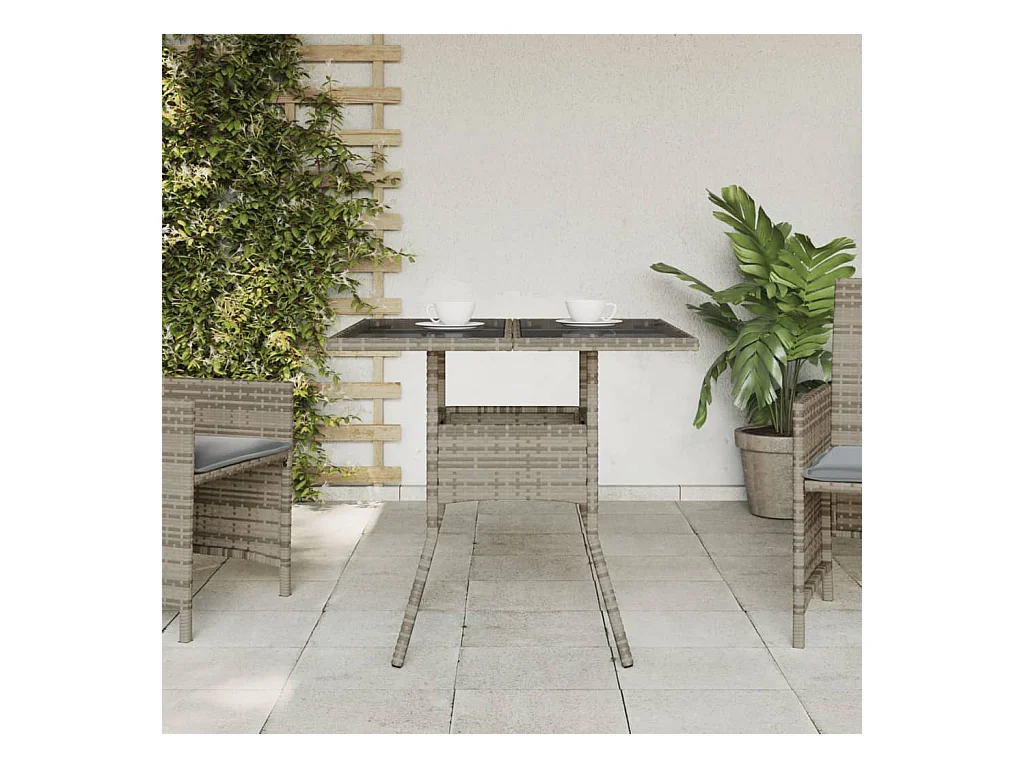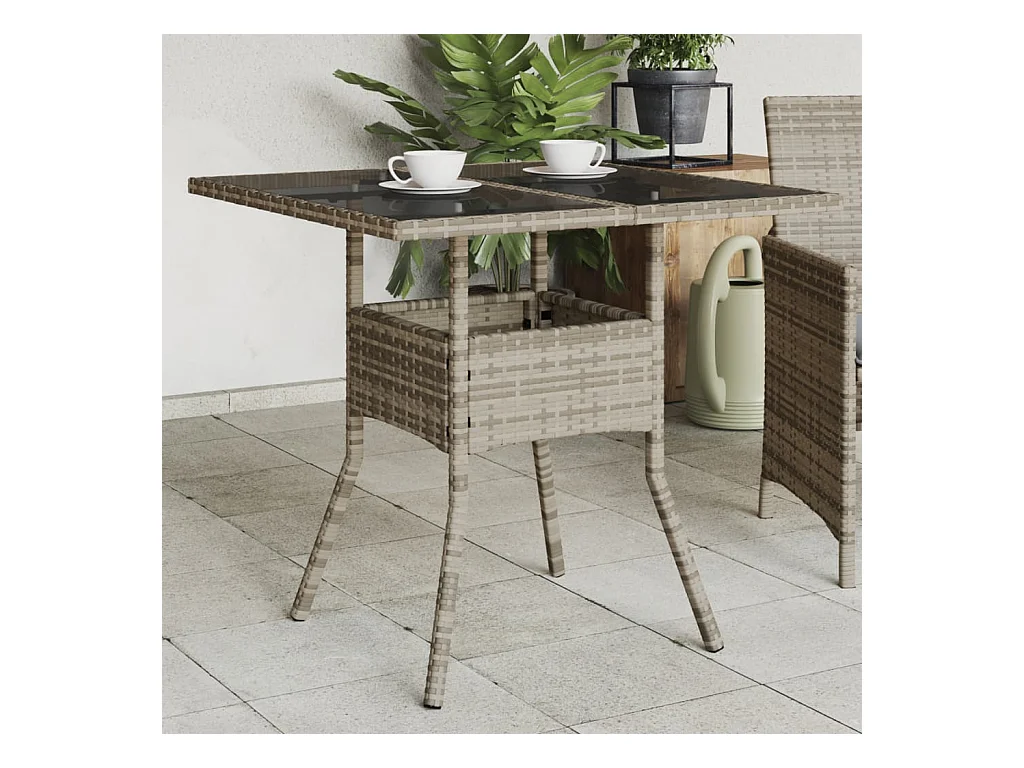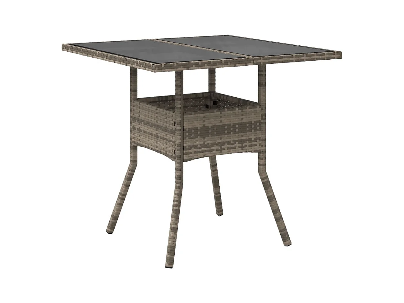Tuintafel met grijs glazen blad 80x80x75 cm geweven hars