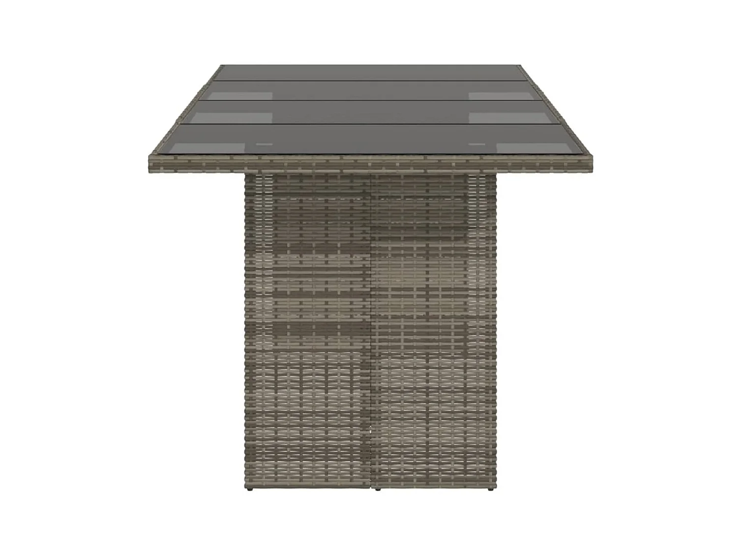 Tuintafel met grijs glazen blad 190x80x74cm geweven hars
