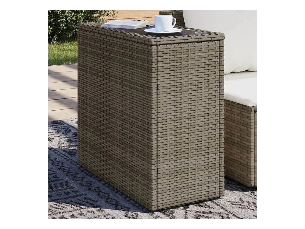 Grijze tuintafel 70x38x42 cm gevlochten hars en acaciahout