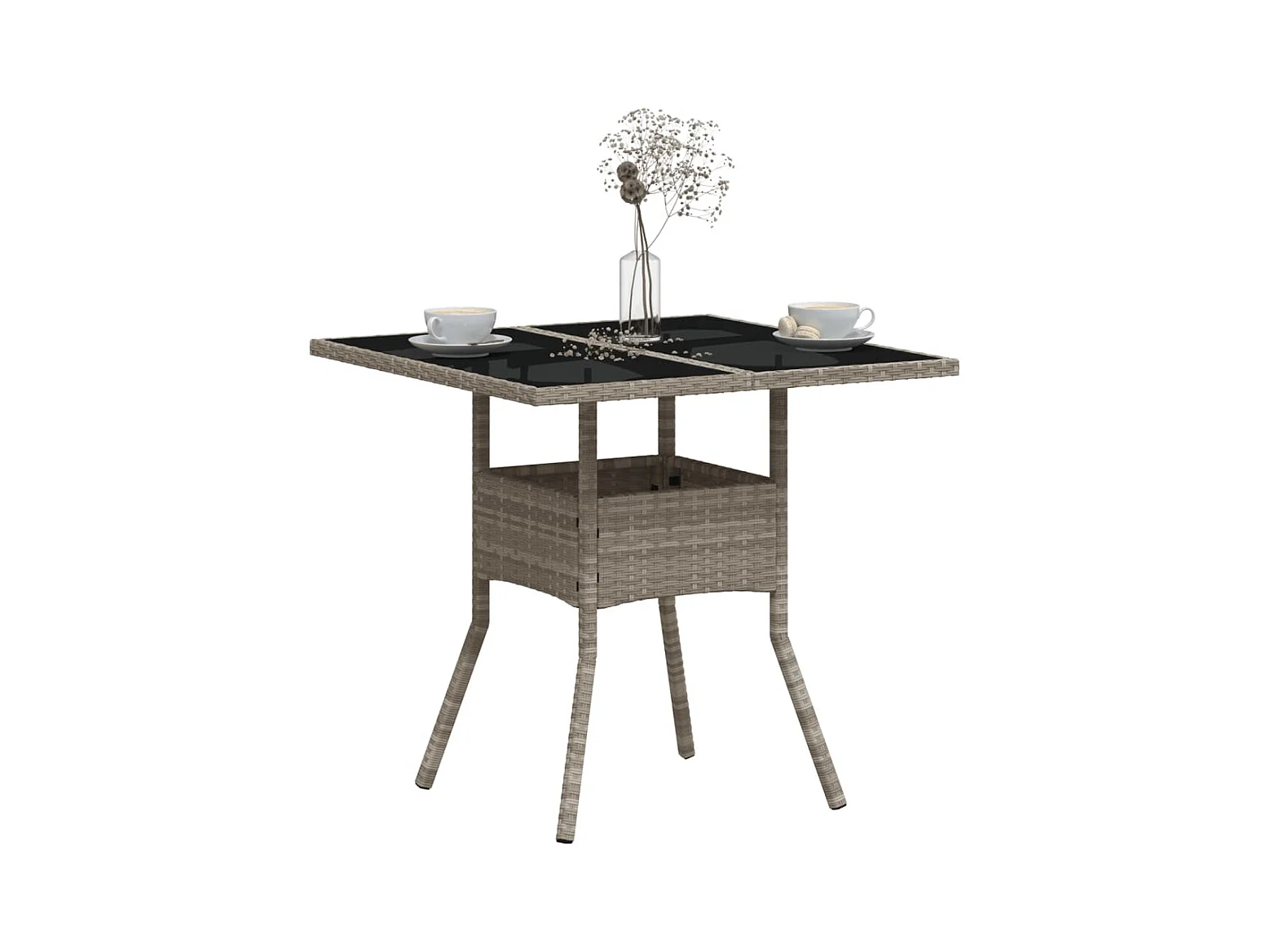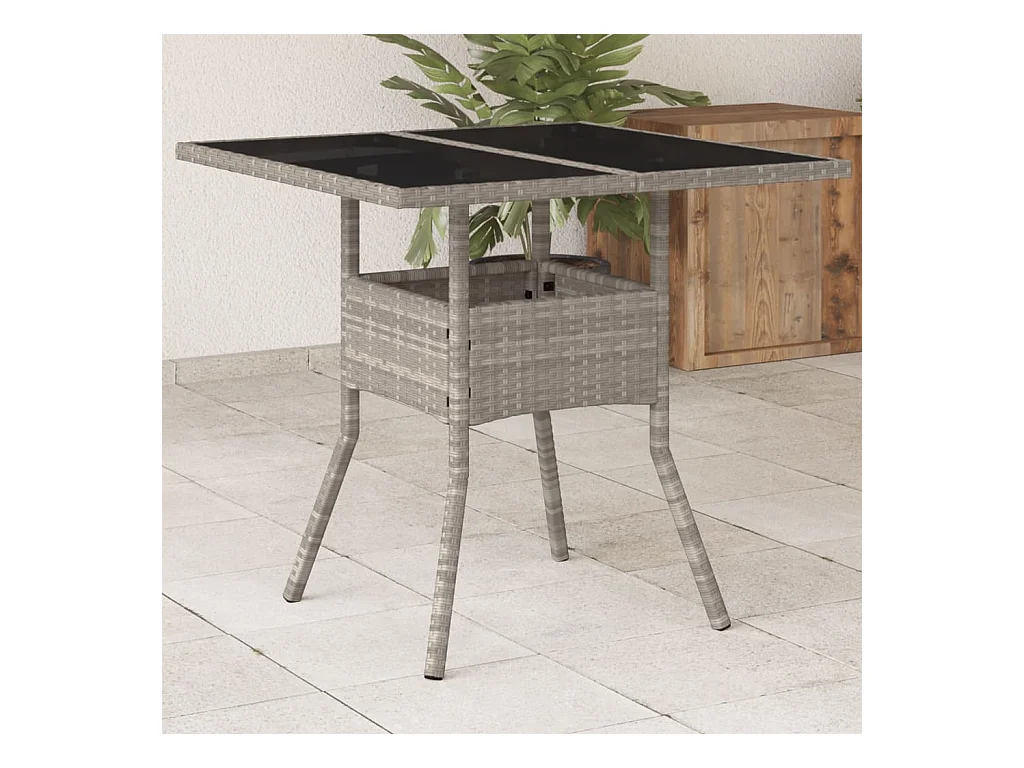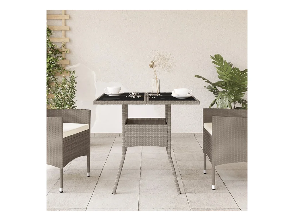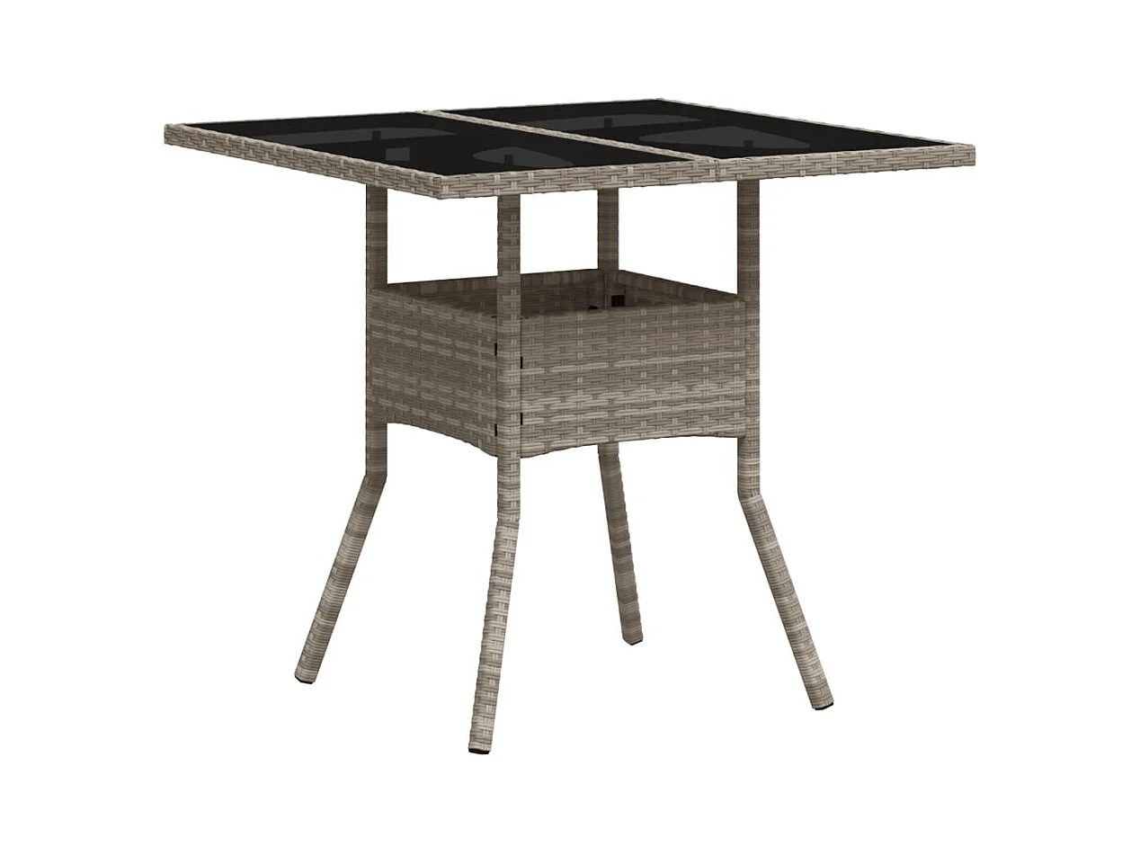 Tuintafel met grijs glazen blad 80x80x75 cm geweven hars