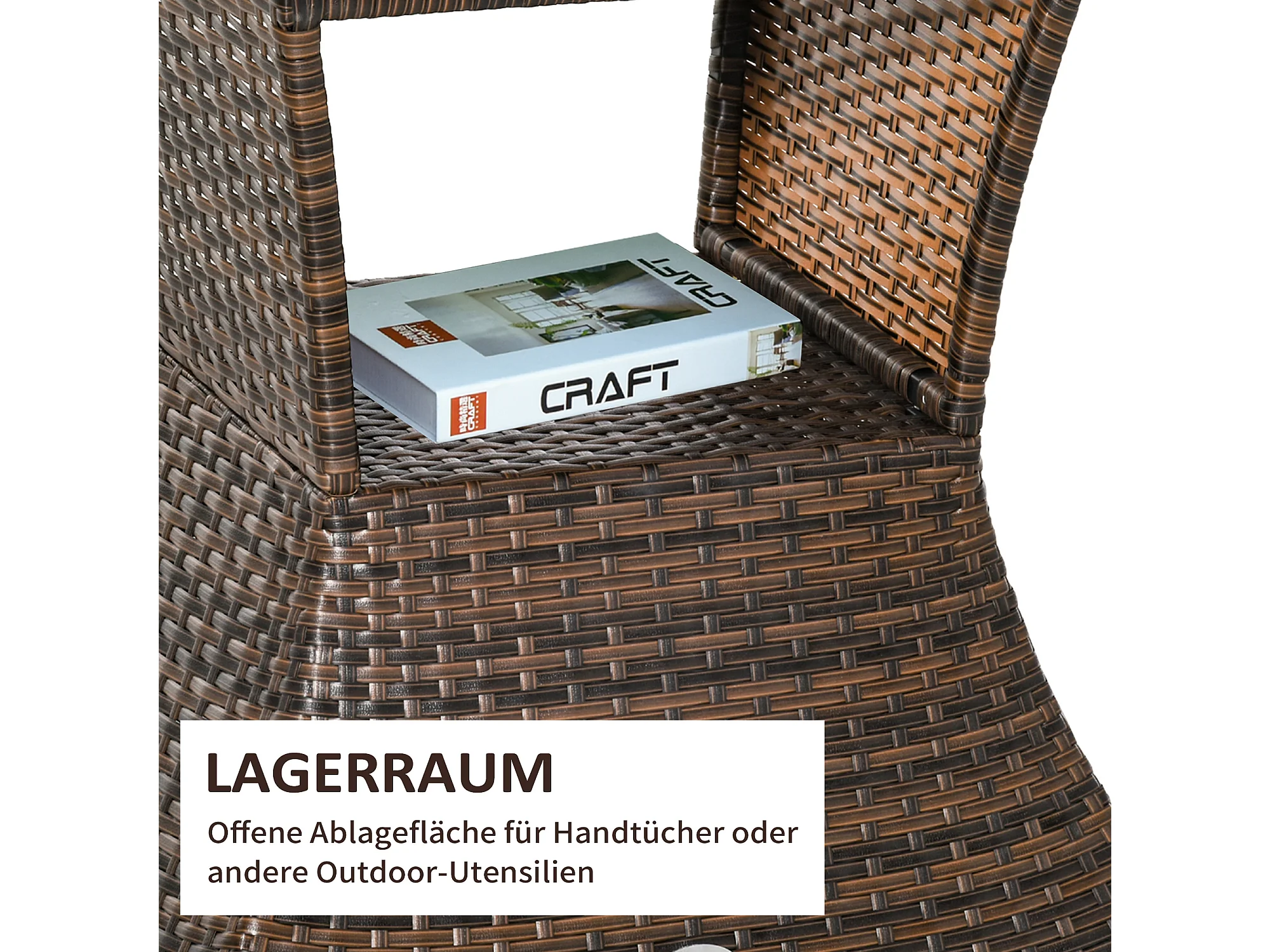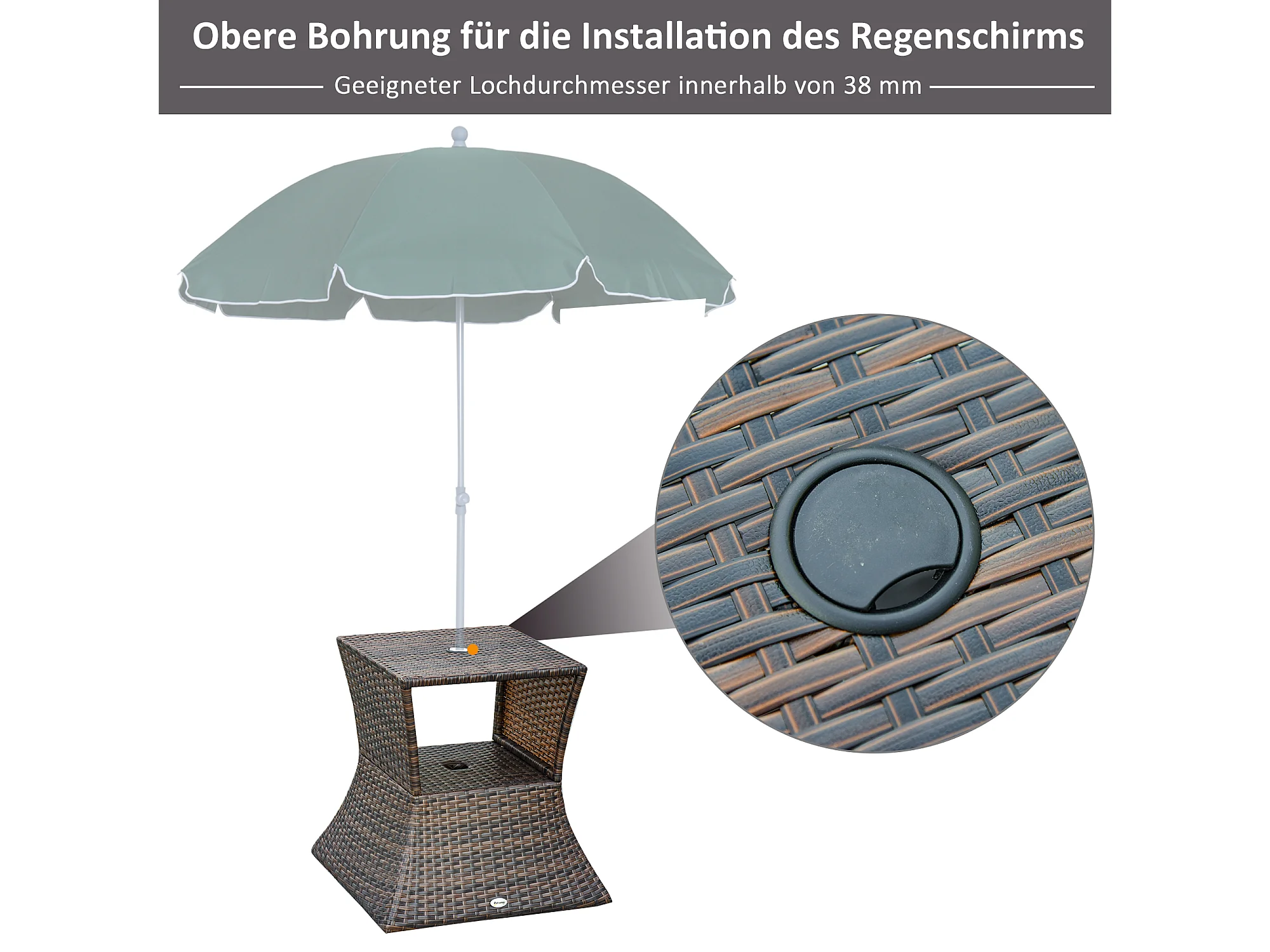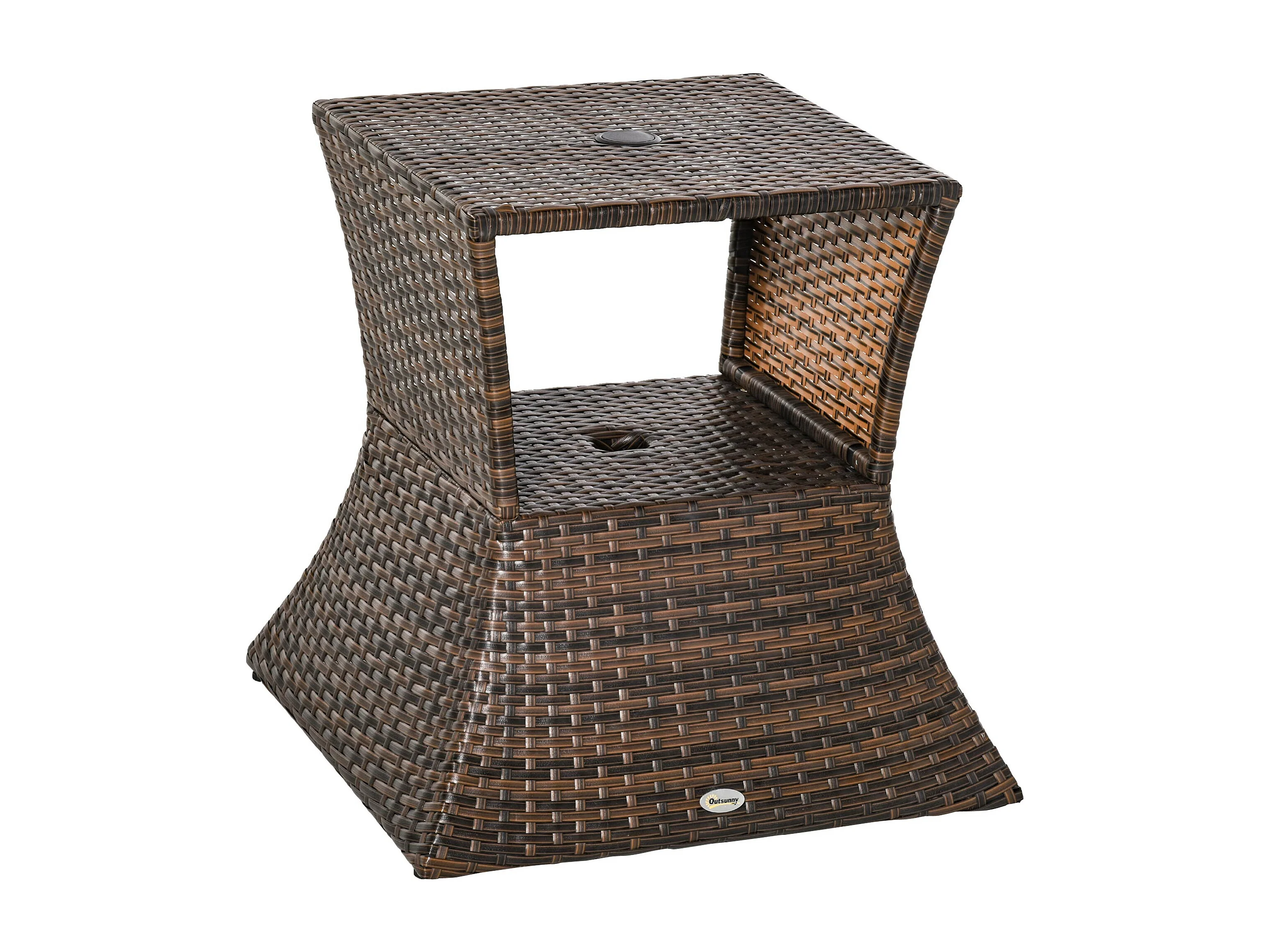 Tuintafel met parasolvoet, polyrotan en metaal, bruin, multifunctioneel (54x54x55cm)