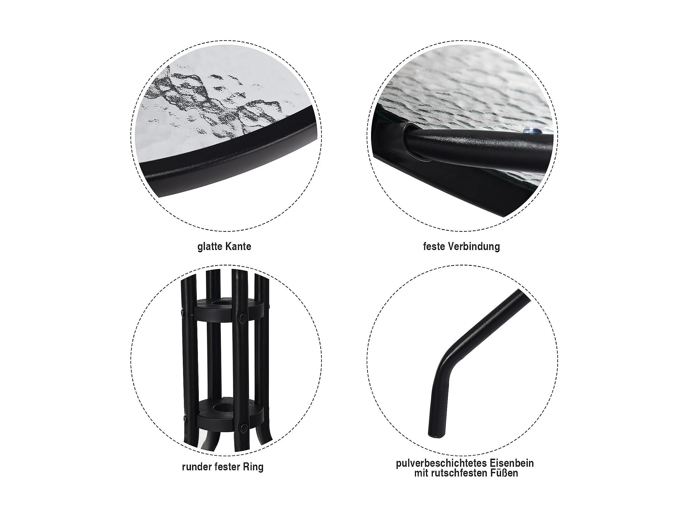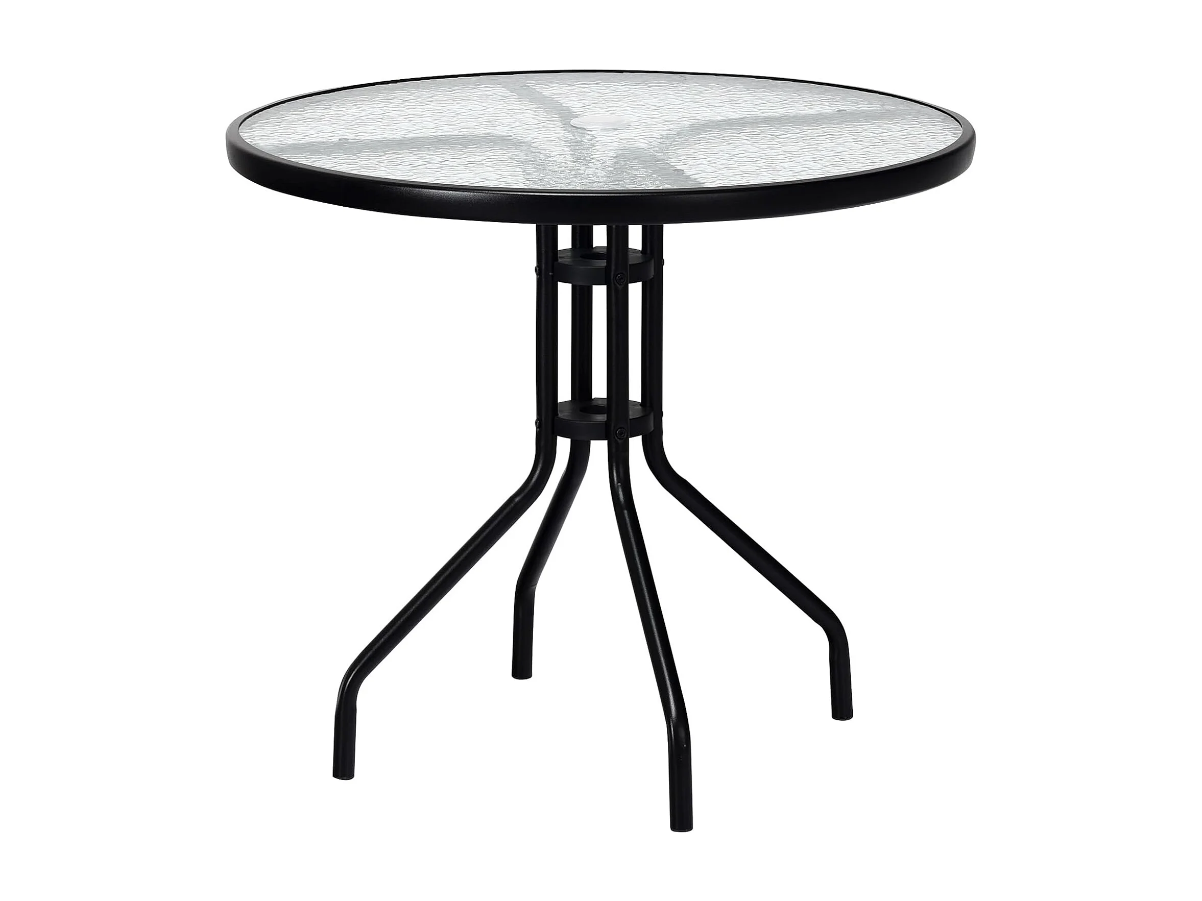 Tuintafel met tafelblad van gehard glas, terrastafel met schermgat, balkontafel voor 4 personen, outdoor eettafel voor balkon, terras, tuin, 86 x 86 x 71 cm, zwart