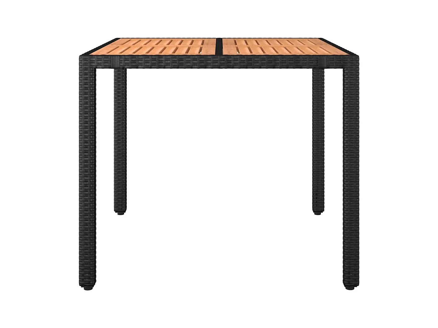 Tuintafel met houten blad, zwart, 90x90x75 cm, gevlochten hars