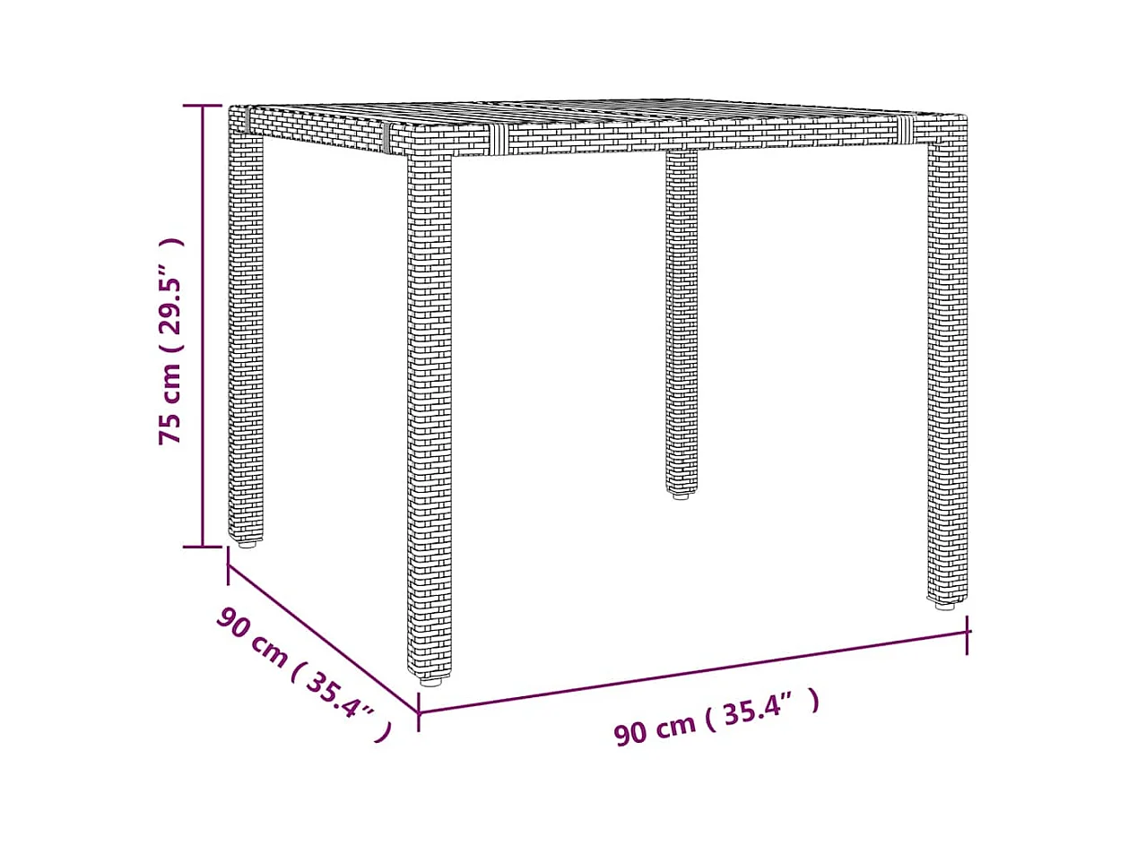 Tuintafel met glazen blad, zwart, 90x90x75 cm, gevlochten hars