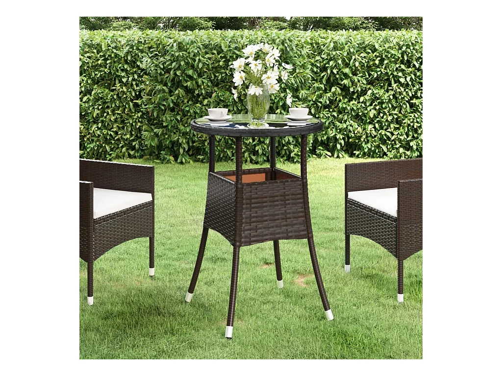 Tuintafel Ø60x75 cm Gehard glas/gevlochten hars Bruin