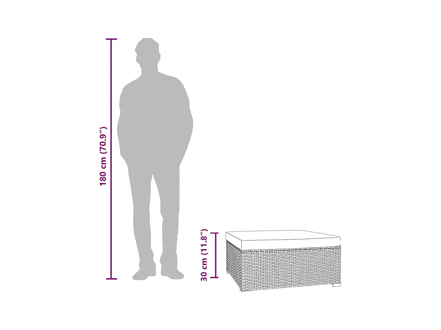 Tuinvoetenbank met kussen 70x70x30 cm poly rattan grijs