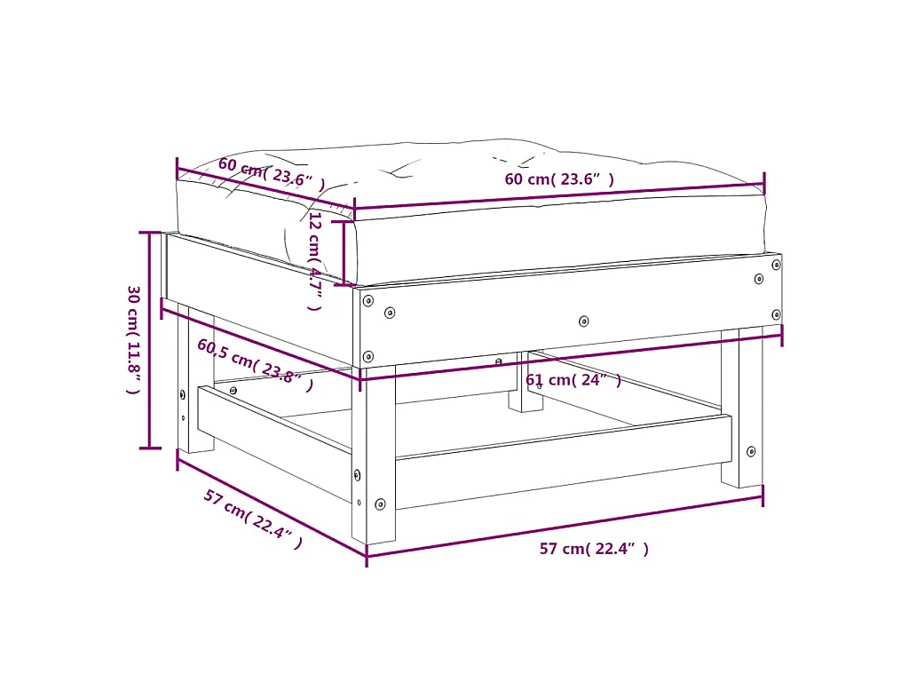 Tuinvoetenbank met kussen massief douglashout