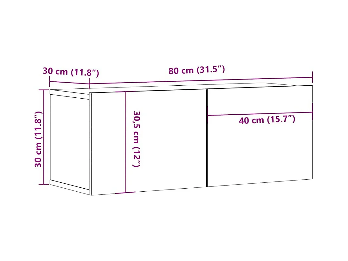 TV-kast 2 stuks wit 80x30x30 cm bewerkt hout