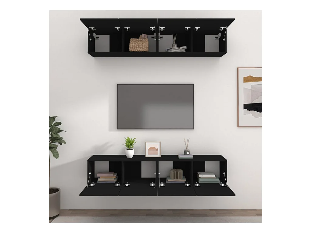 TV-kast 4 stuks Zwart 80x30x30 cm Bewerkt hout