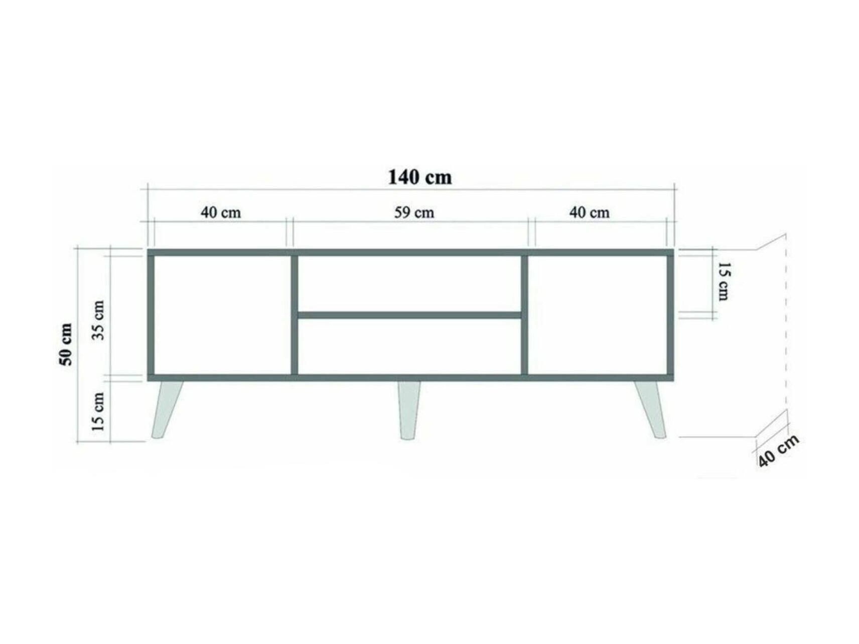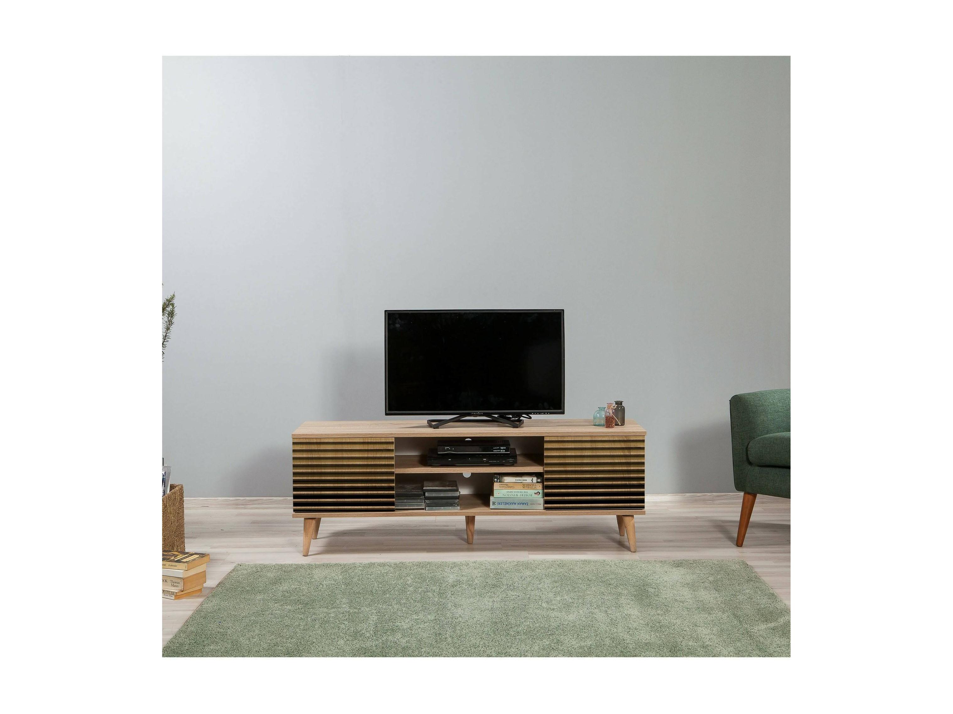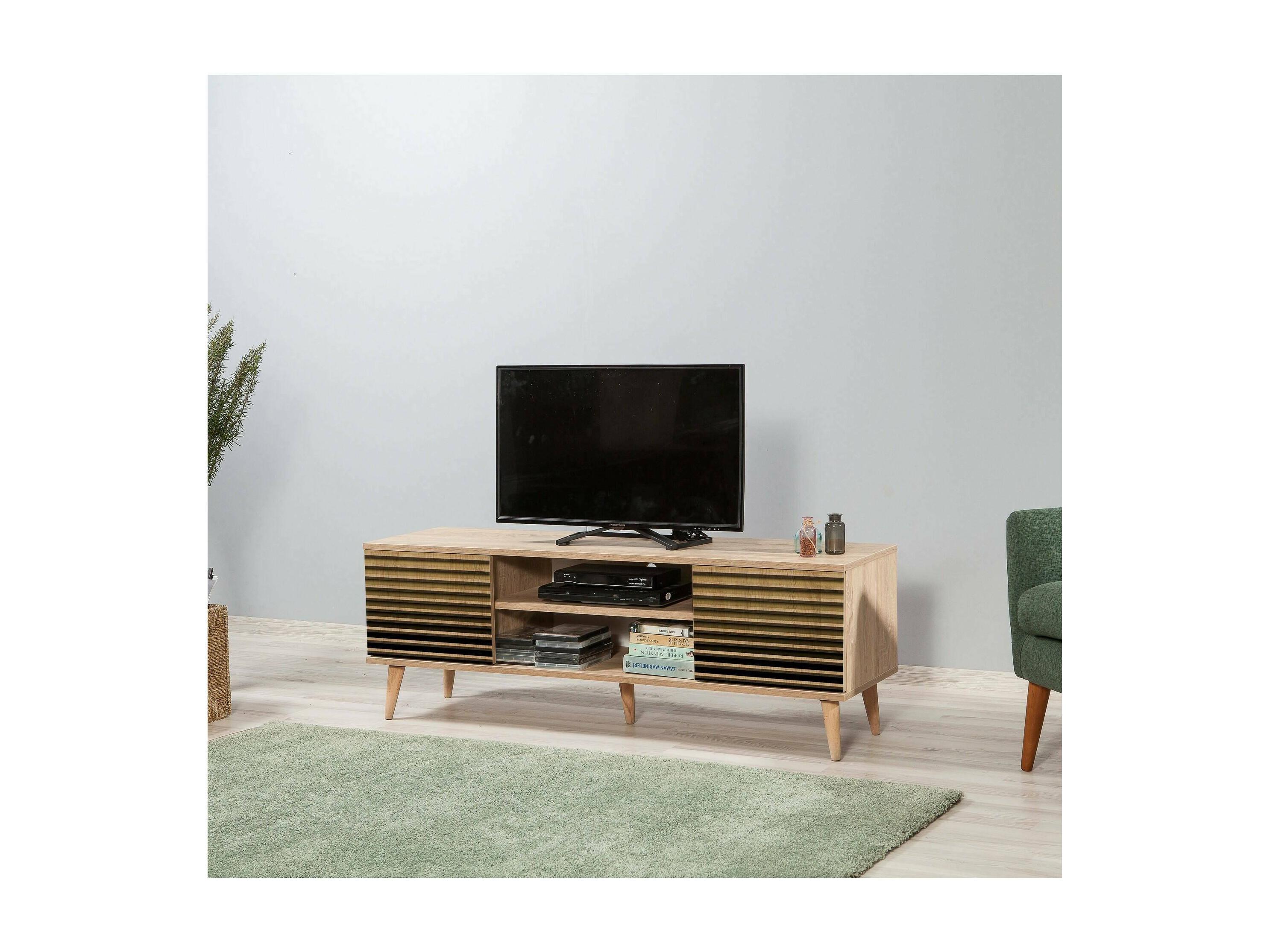 TV kast Dfantacc, Woonkamer dressoir, Lage TV kast, Ingebouwde wandvoet, 140x40h50 cm, Eiken