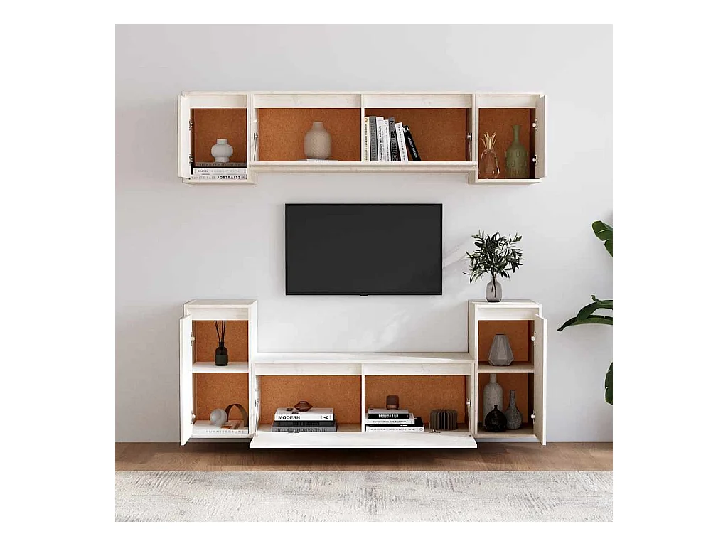 TV-kast met 6-delige kast, wit, massief grenenhout