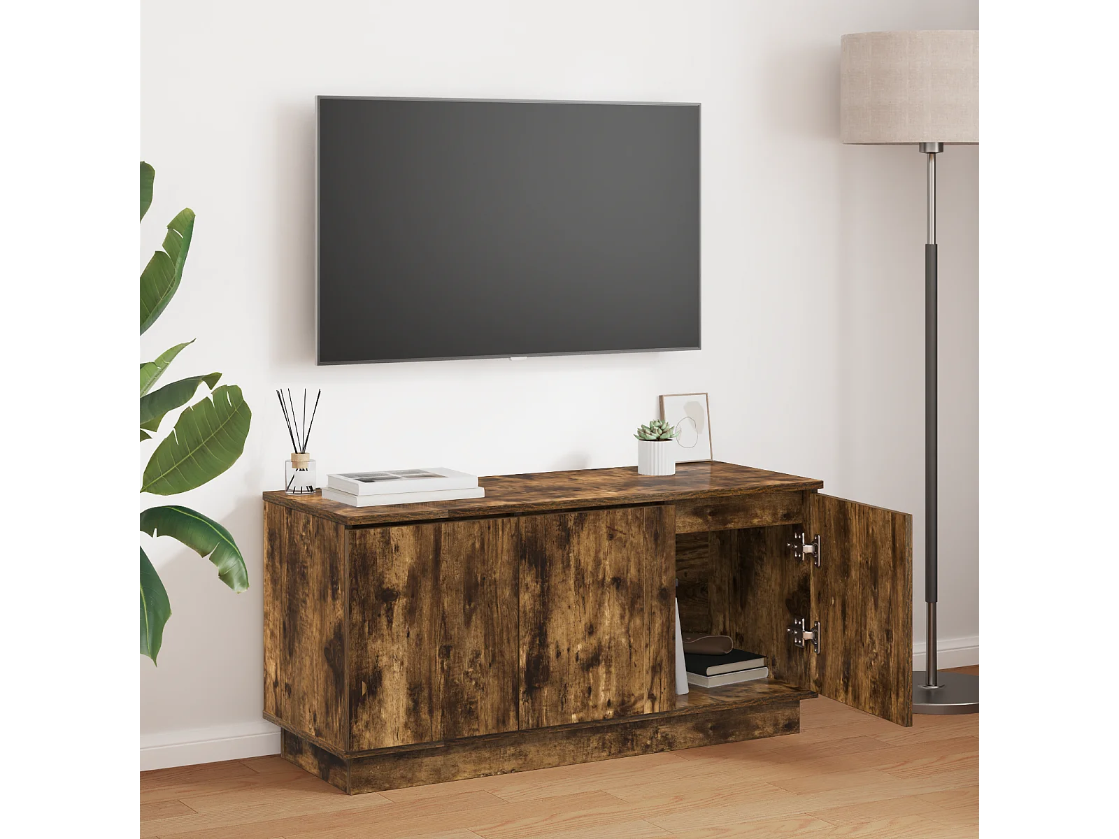 Tv-meubel | Tv-Bank | TV-kastmet LED-verlichting 100X35,5x25 cm oud houtkleurig
