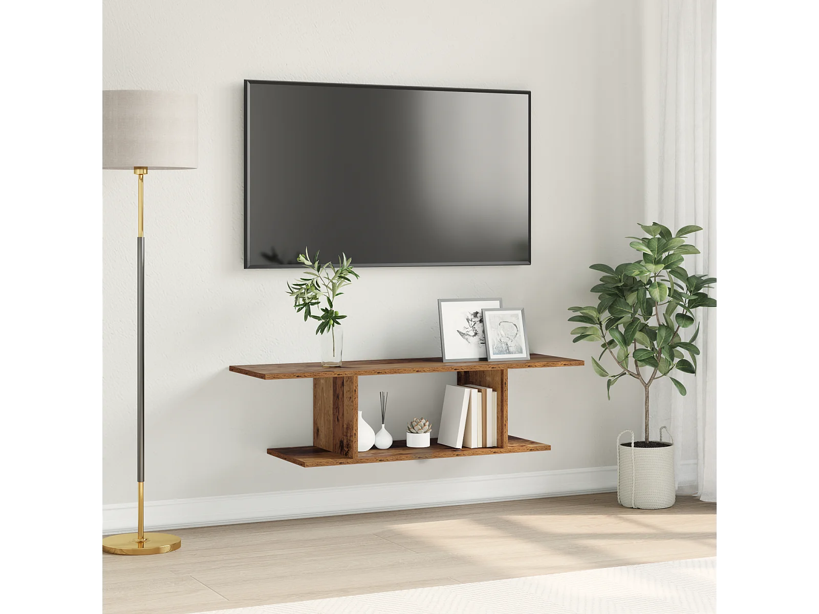 Tv-wandmeubel | TV-kast | Tv-Bank 80x30x30 cm bewerkt hout artisanaal eikenkleurig
