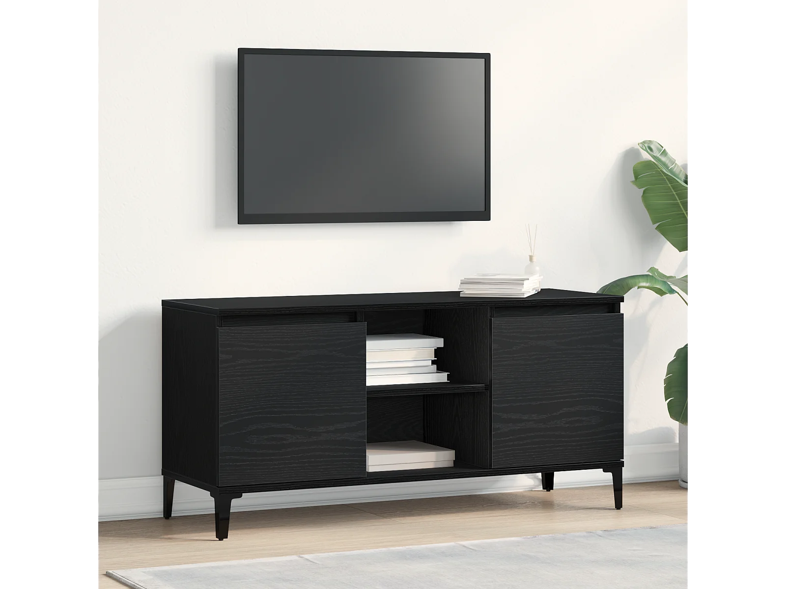Zwart Eiken Entertainmentcentrum Zwart eiken Bewerkt hout, metaal