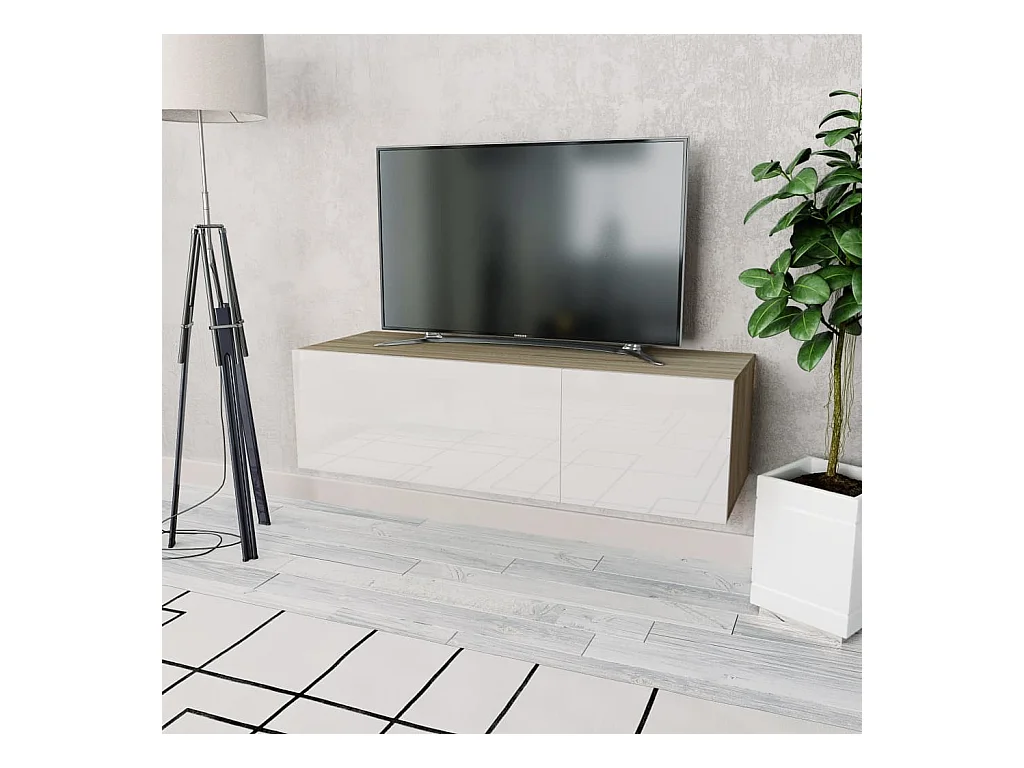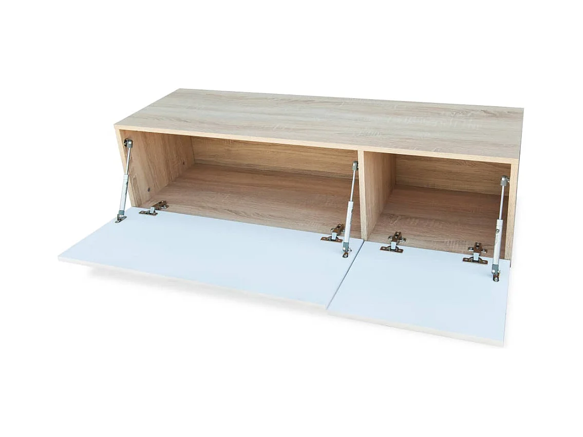 TV-kast van bewerkt hout 120x40x34cm Eiken en glanzend wit