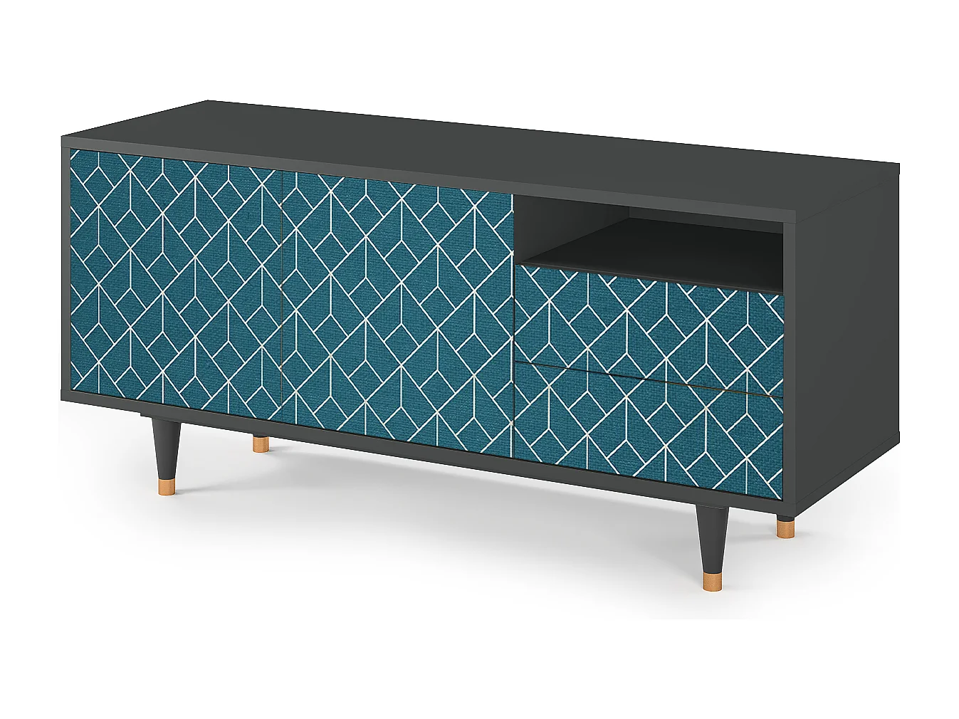 TV-meubel - 125х56х41 cm - T7 - Turquoise Geometry, Antraciet