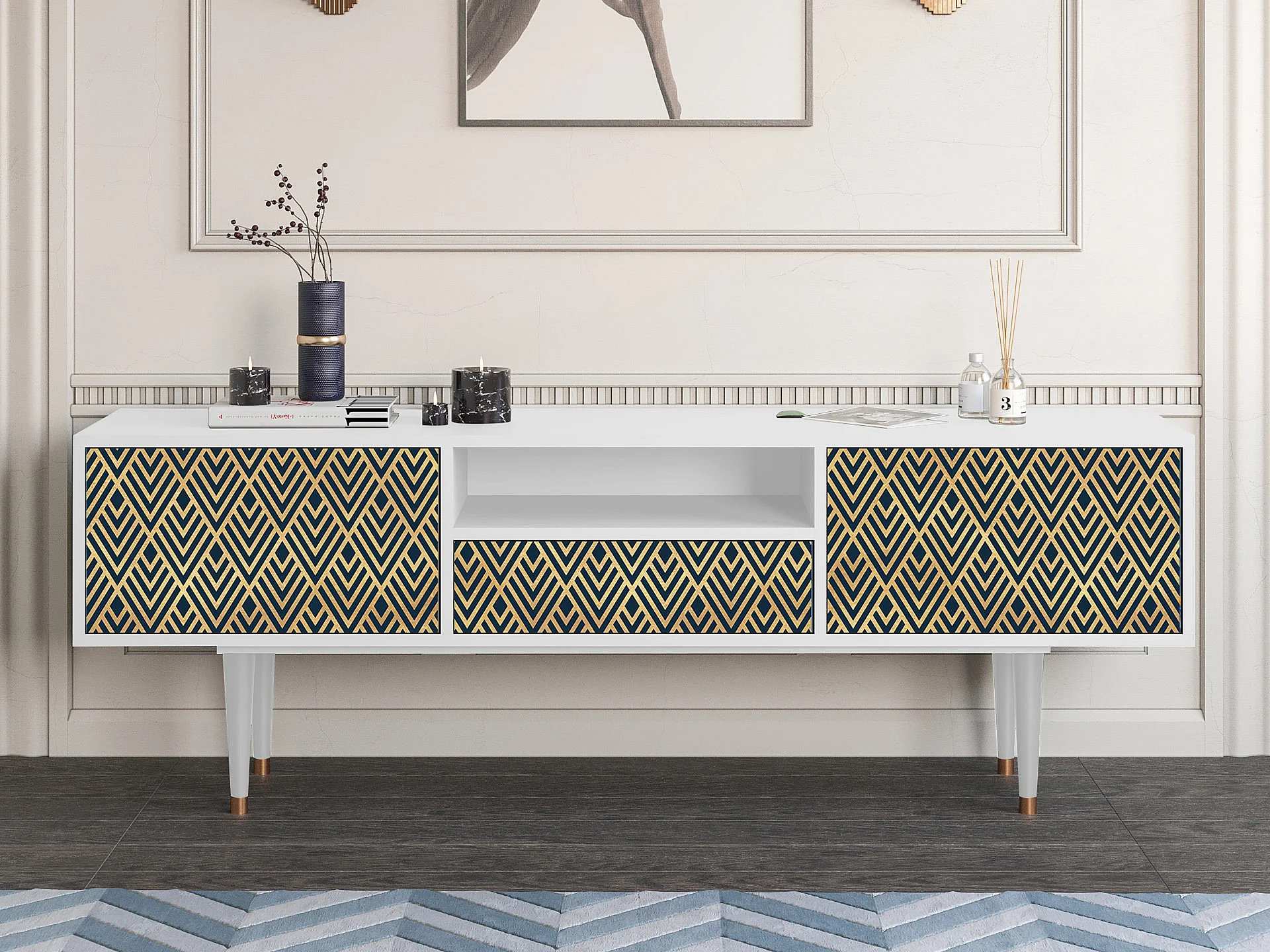 TV-meubel - 170х59х41 cm - T6 - Egypt Triangles, Wit