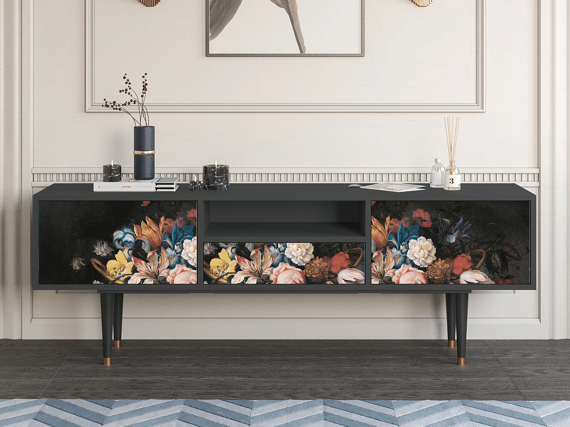TV-meubel - 170х59х41 cm - T6 - Still Life with Flowers, Antraciet