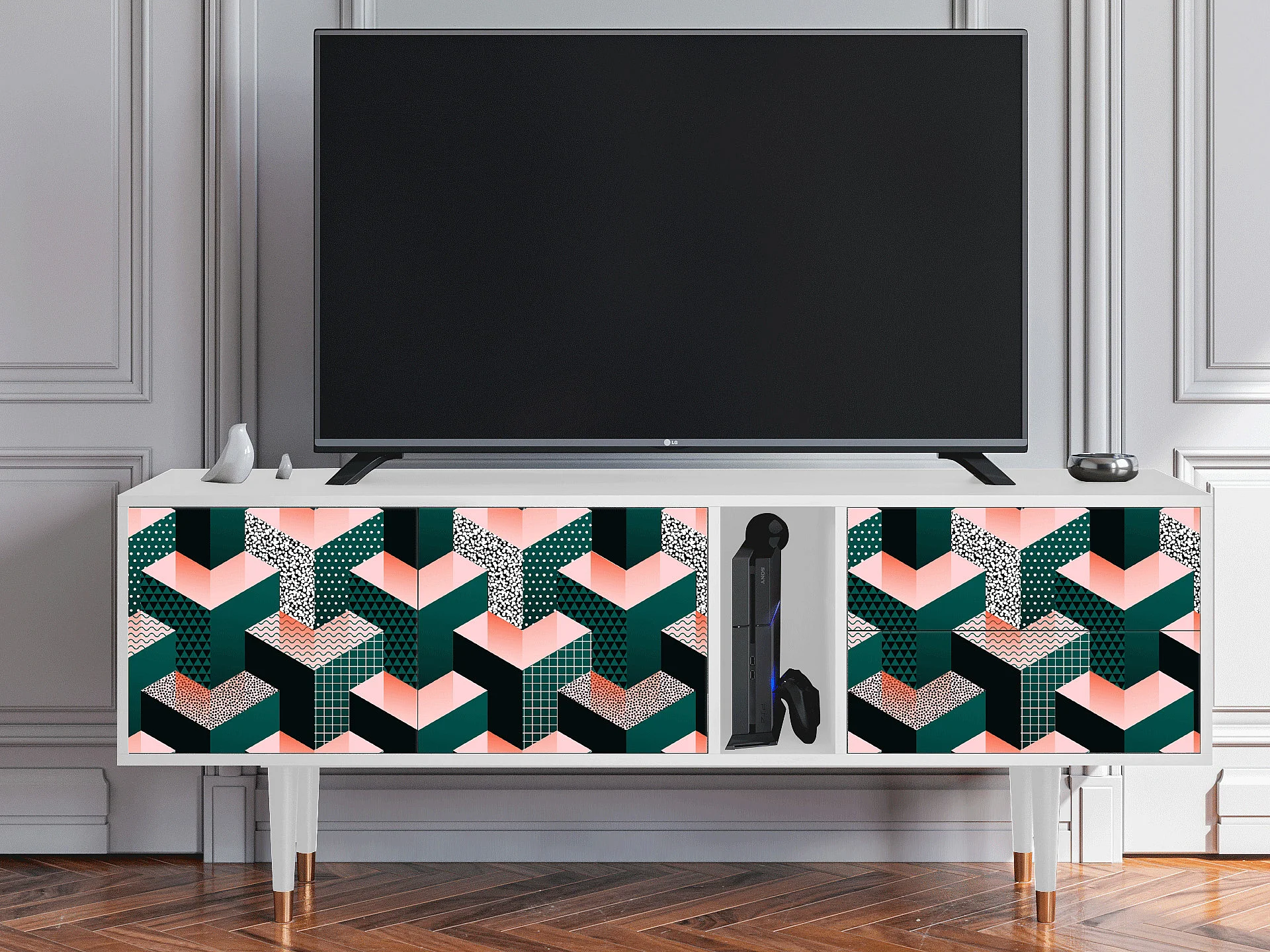 TV-meubel - 170х69х48 cm - T1 - Geometric Madness, Wit
