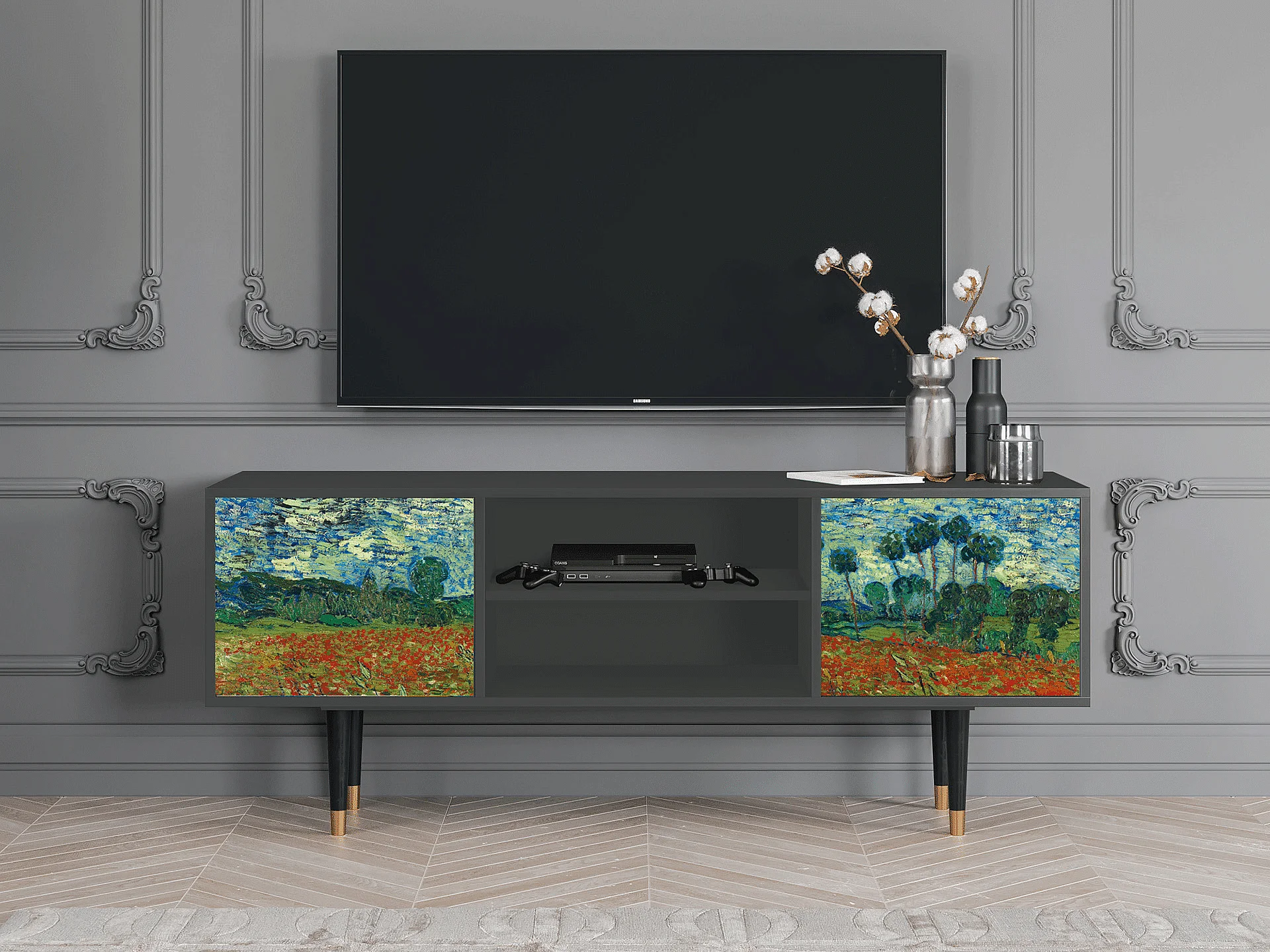 TV-meubel - 170х69х48 cm - T2 - Poppy field by van Gogh, Antraciet