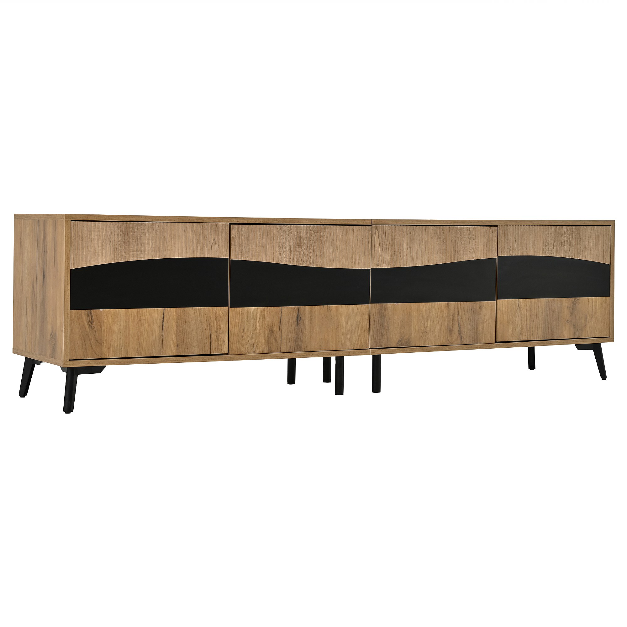 Tv-meubel 180 cm met 4 deuren en 8 ondersteuningspoten, natuurlijke kleur en zwart - voor woonkamer