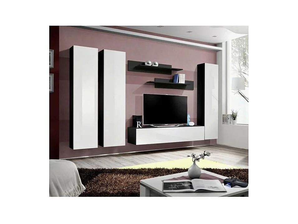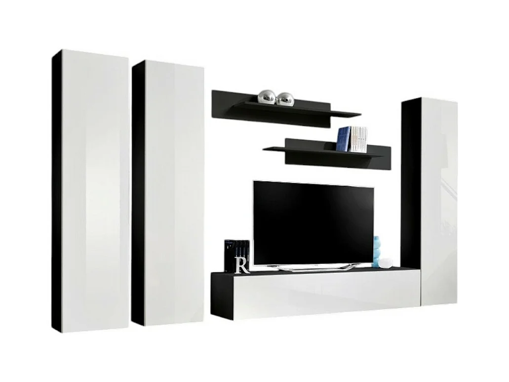 TV-meubel FLY C1 design, in glanzend zwart en wit. Modern en trendy zwevend meubel voor uw woonkamer.