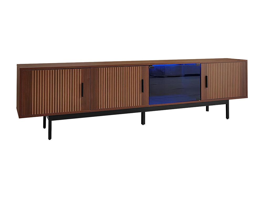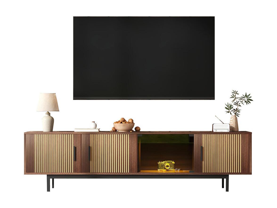 TV-meubel laag meubel met gebeeldhouwde textuur LED-lichtstrip en deur van gehard glas zwart+naturel