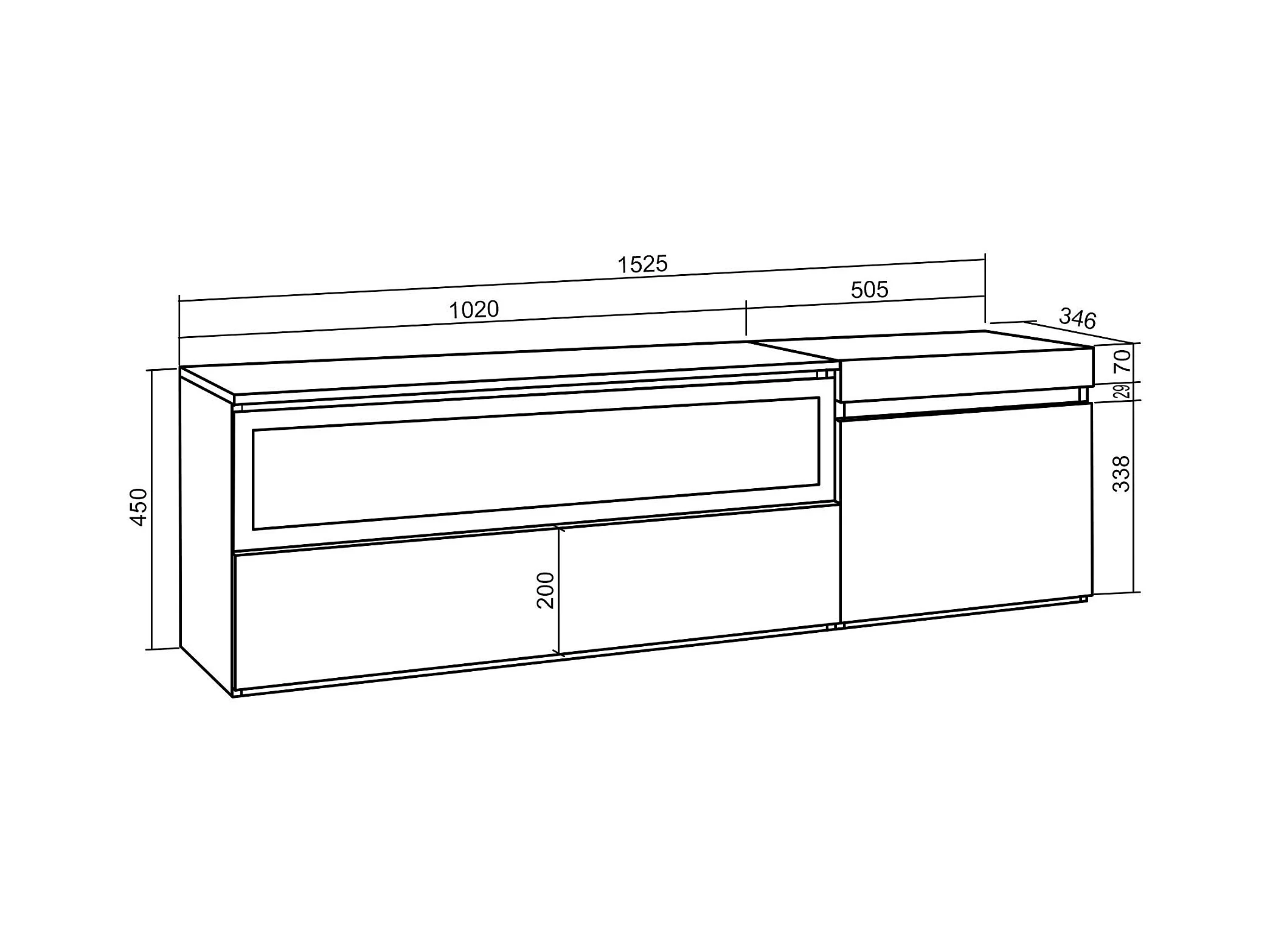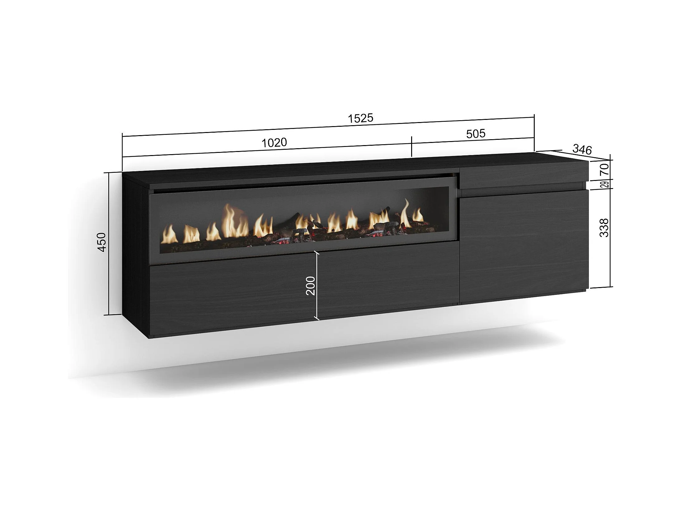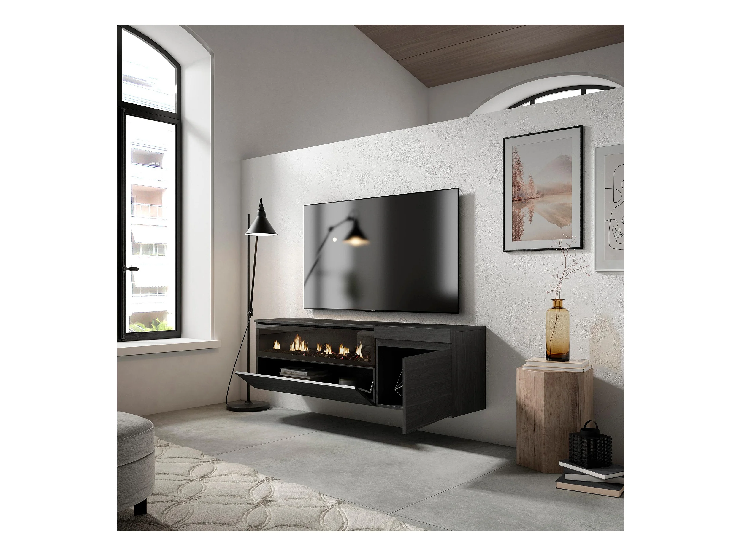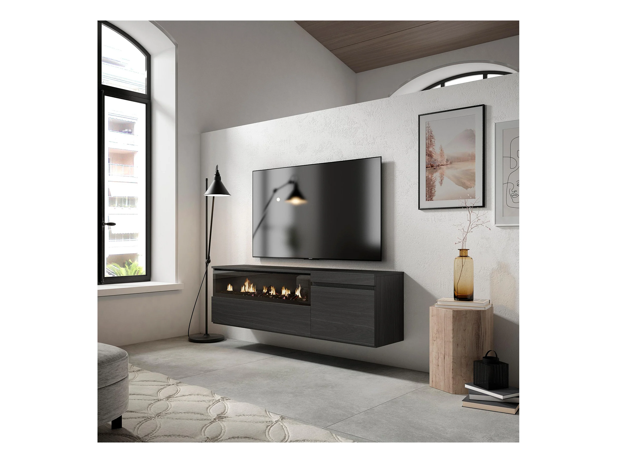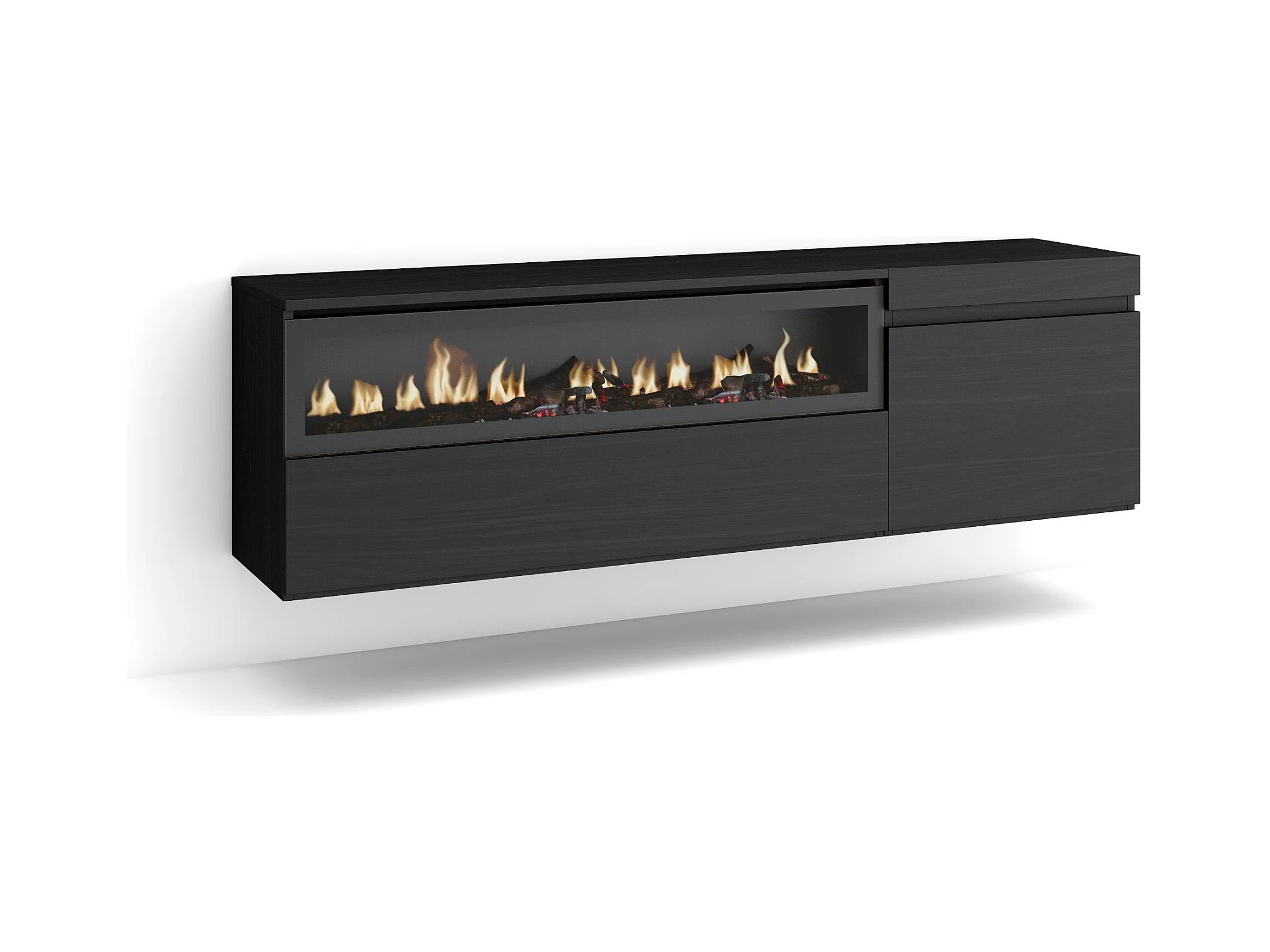 TV-Meubel, Lowboard, 150x35x45cm, Voor tv's tot 65", Elektrische haard, Hangend, Zwart