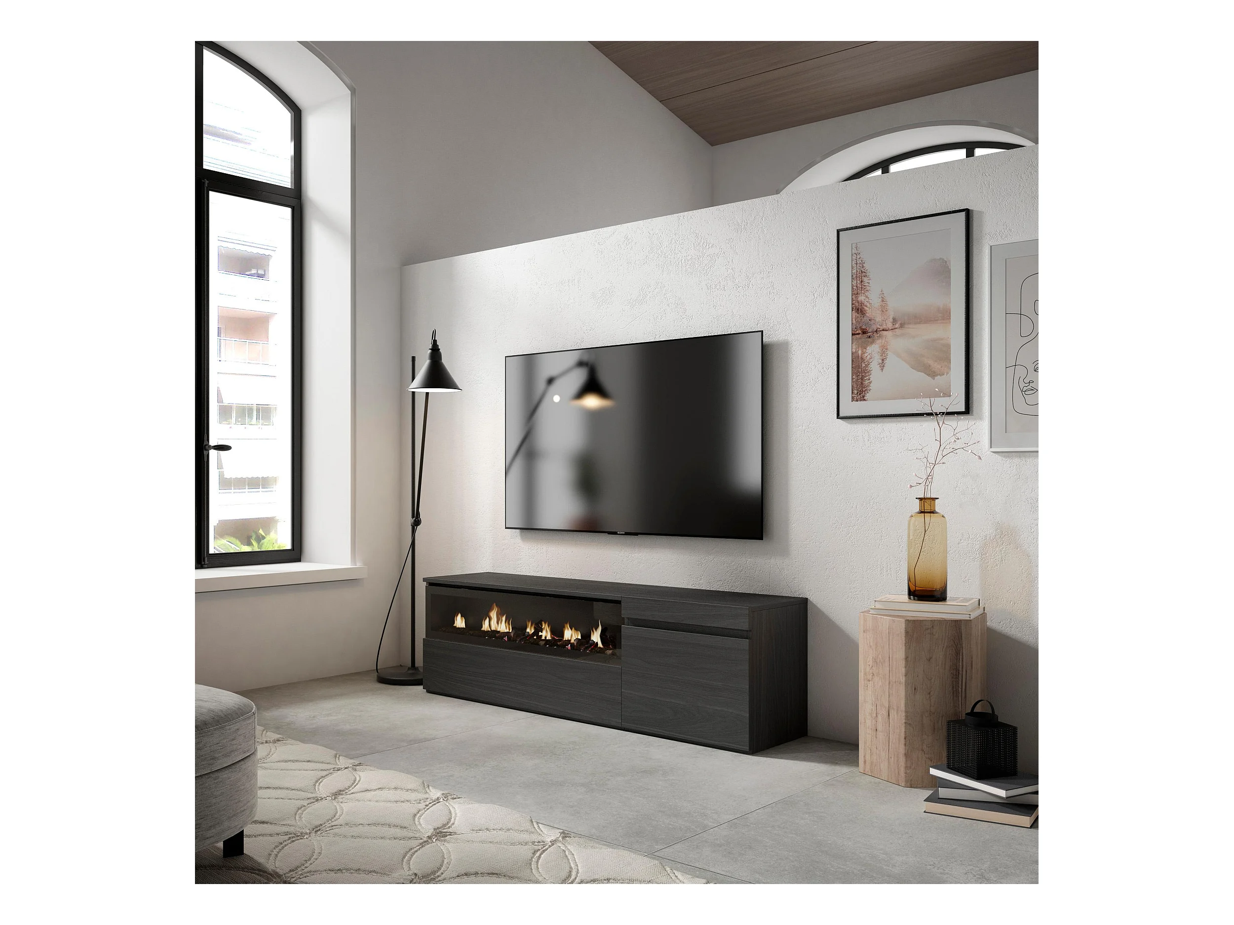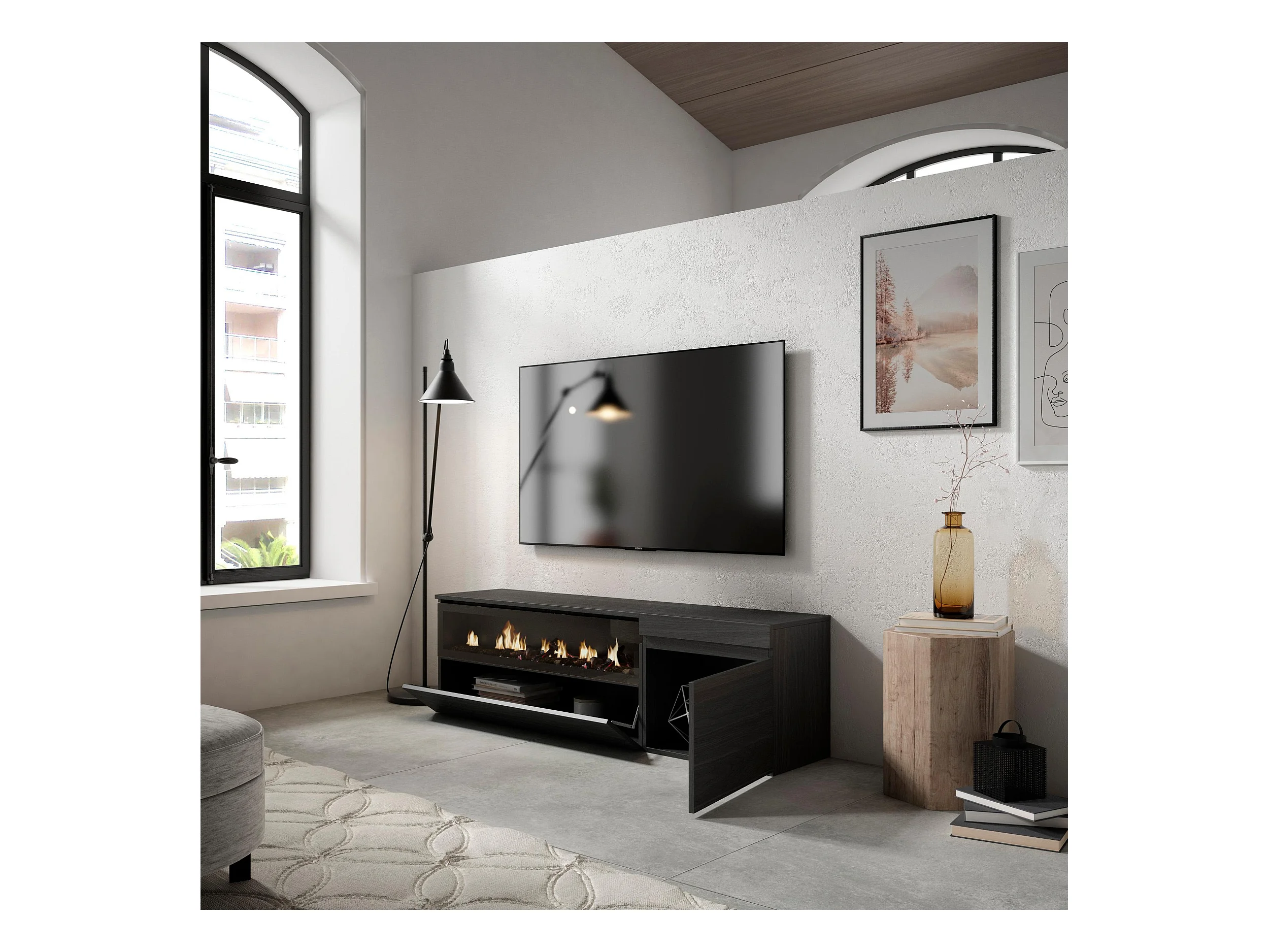 TV-Meubel, Lowboard, 150x35x45cm, Voor tv's tot 65", Elektrische haard, Zwart
