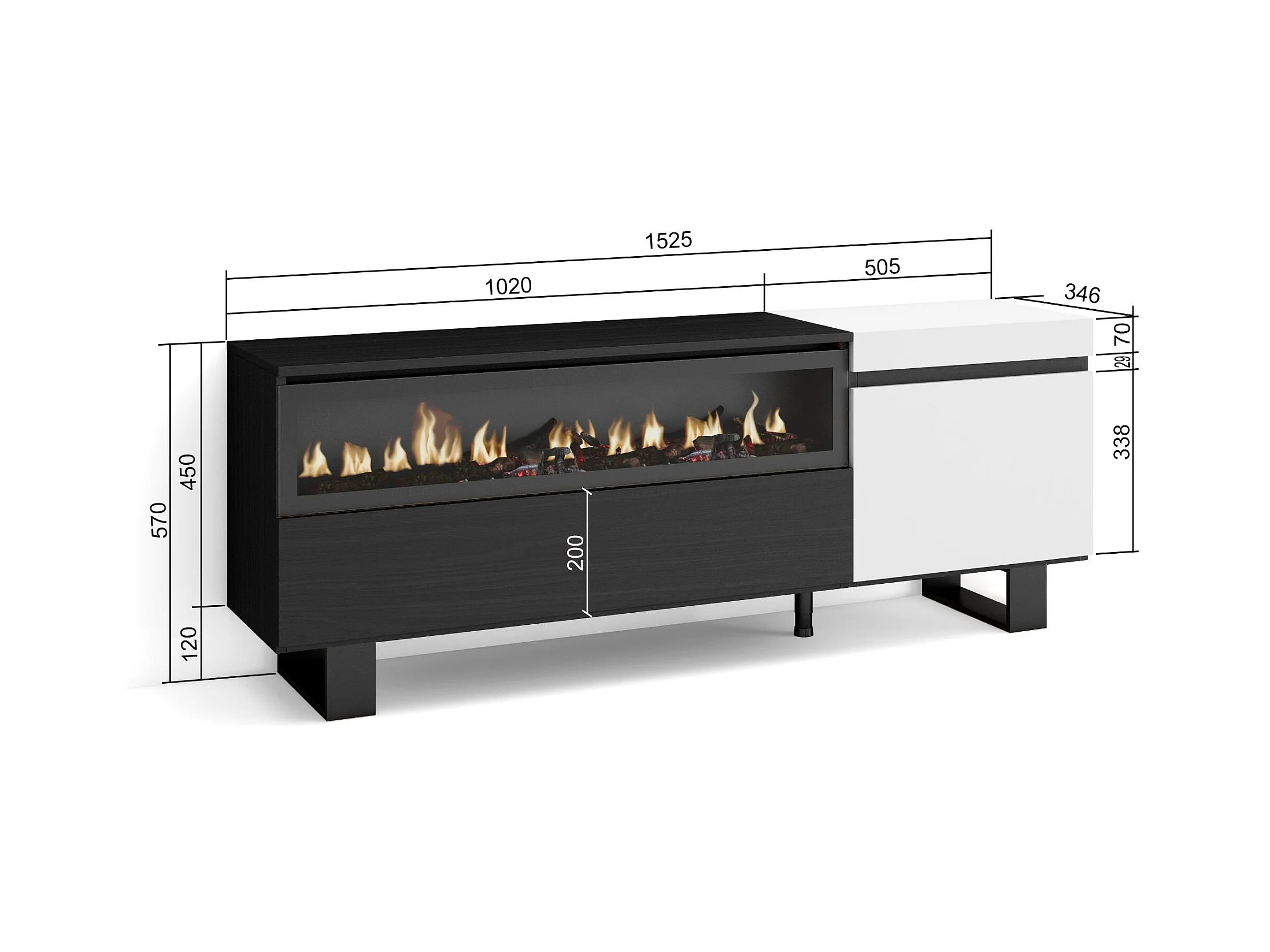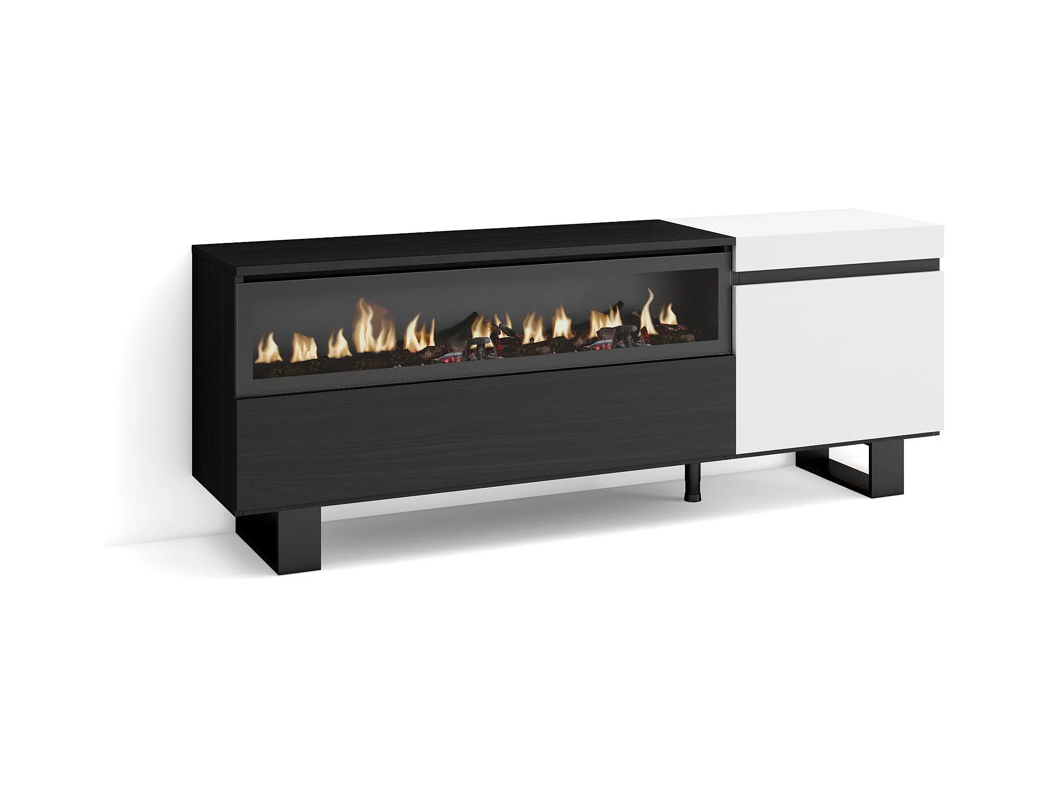 TV-Meubel, Lowboard, 150x35x57cm, Voor tv's tot 65", Elektrische haard, Industrieel design, Wit en Zwart
