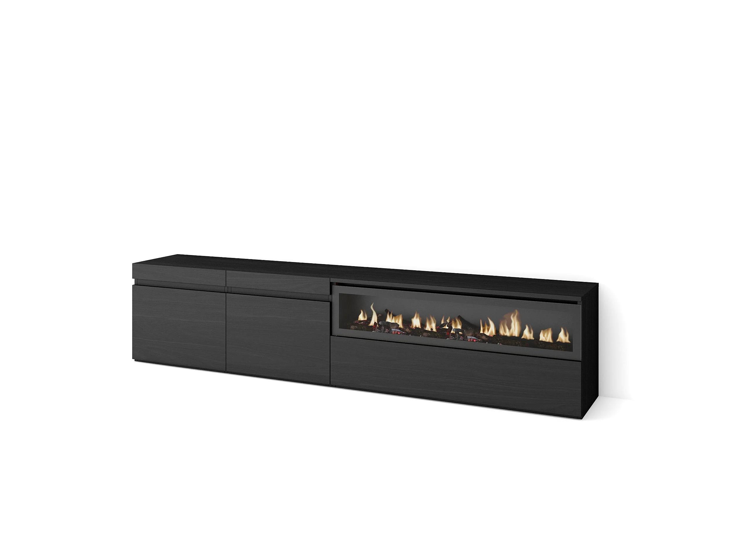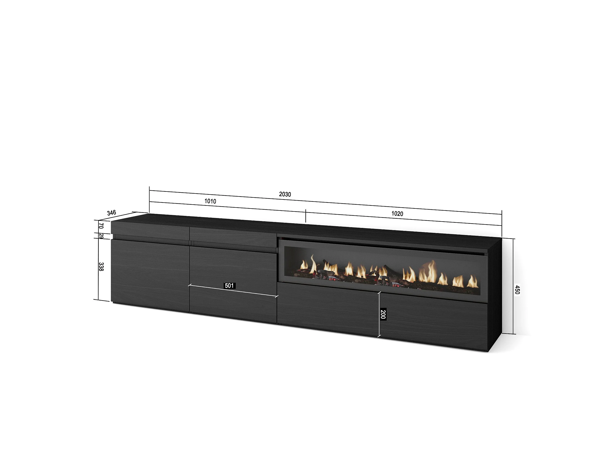TV-Meubel, Lowboard, 200x35x45cm, Voor tv's tot 80", Elektrische haard, Zwart