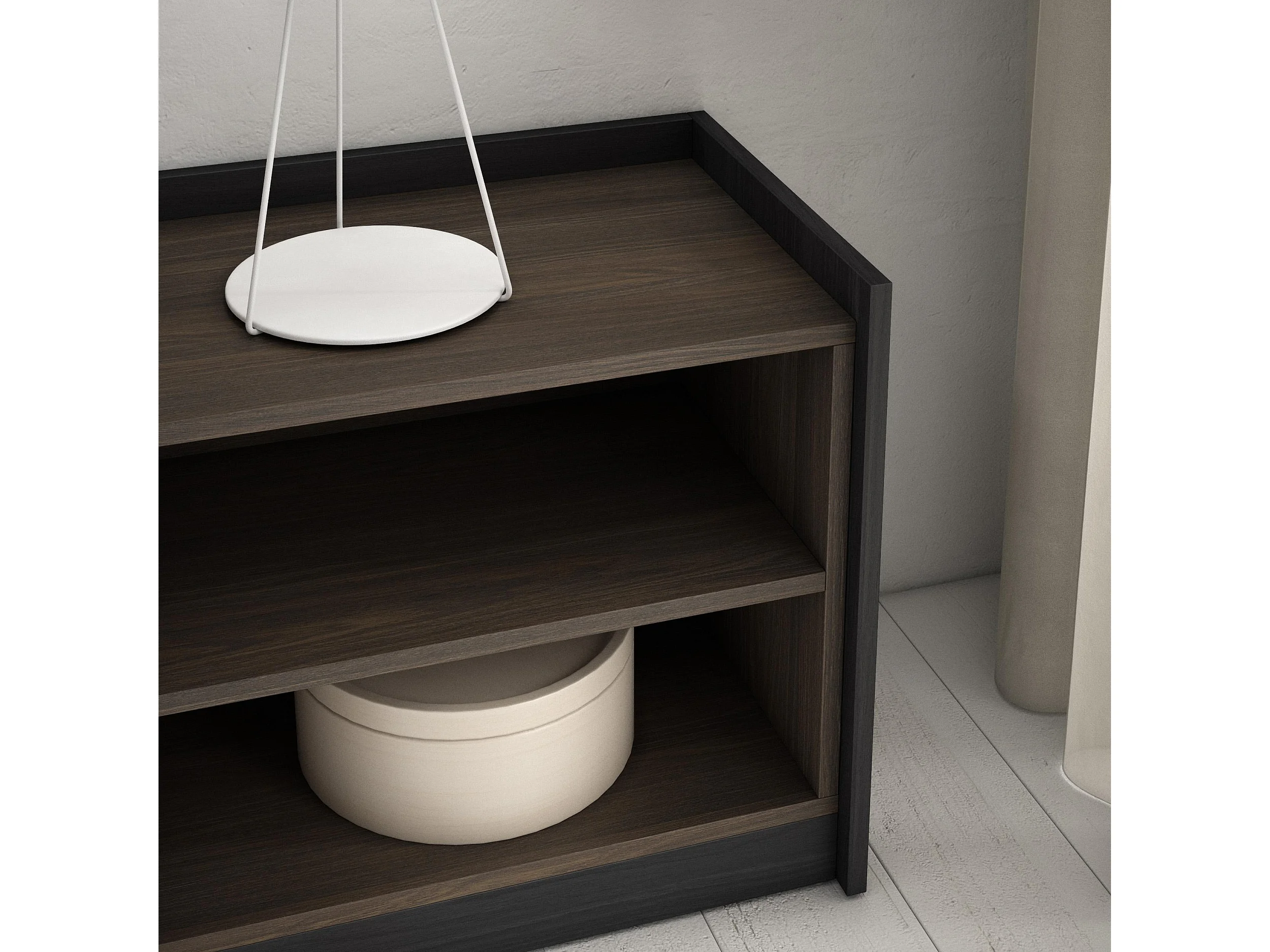 TV-Meubel, Lowboard, 310x50x37 cm, Voor tv's tot 80", Elektrische haard, Donkere eik en Zwart